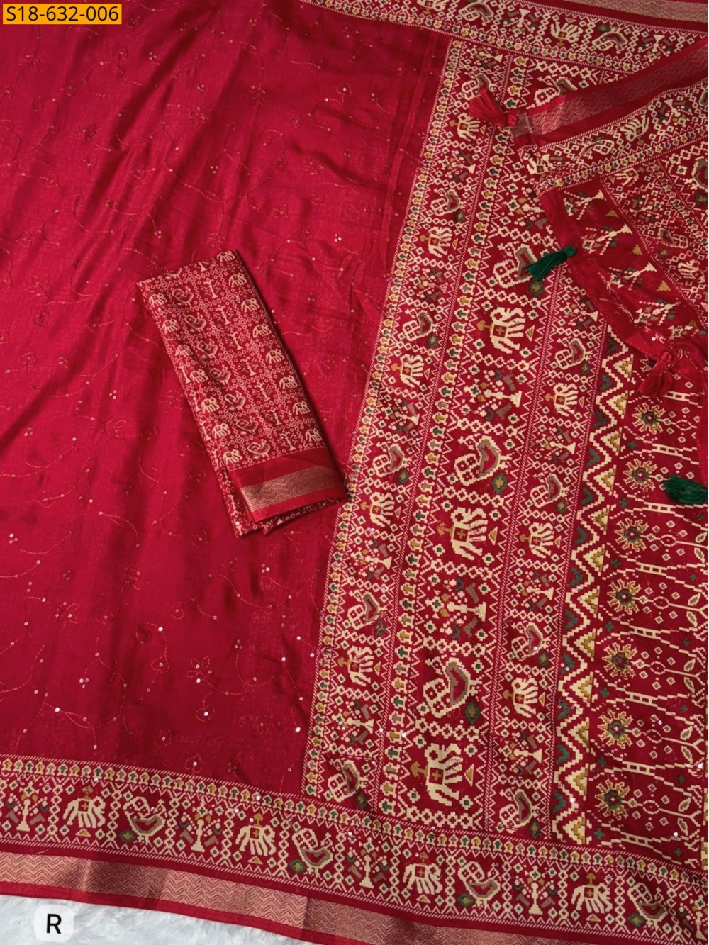 - Designer pallu with tassels