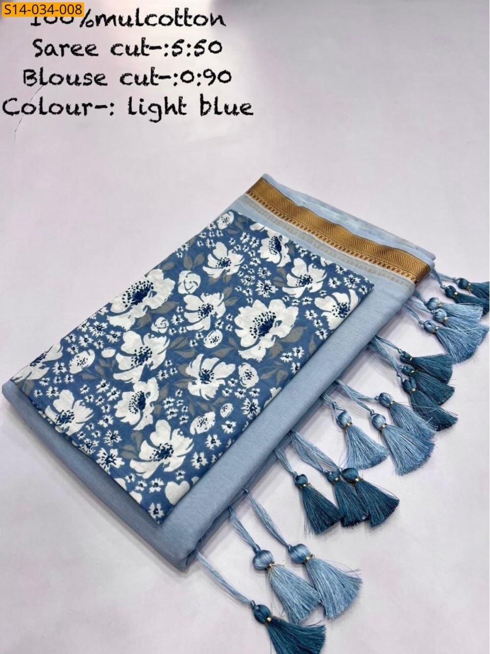 Light Blue Mul cotton saree