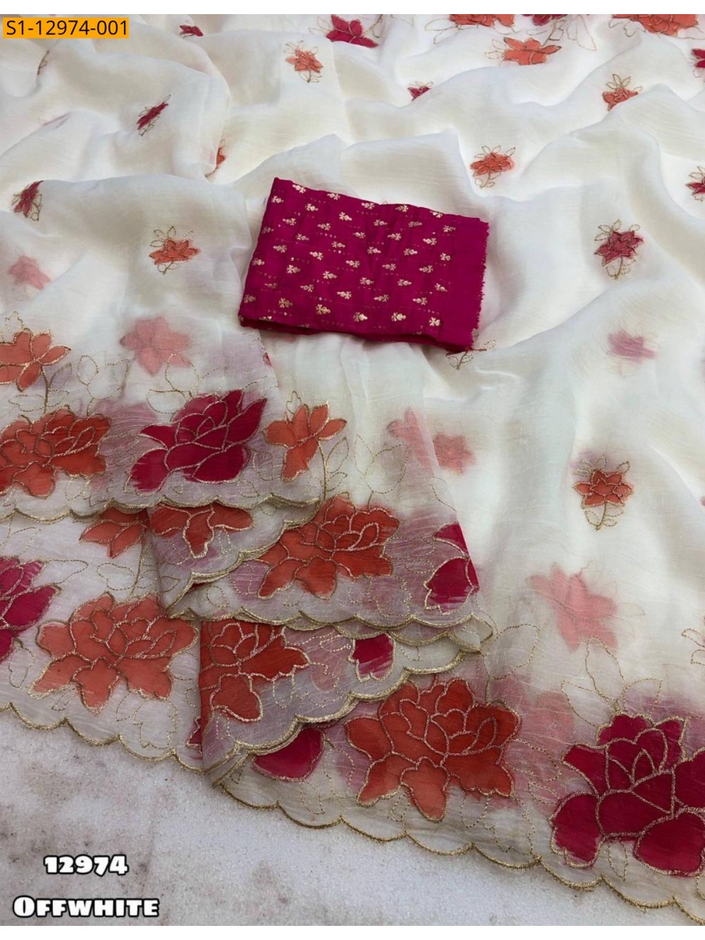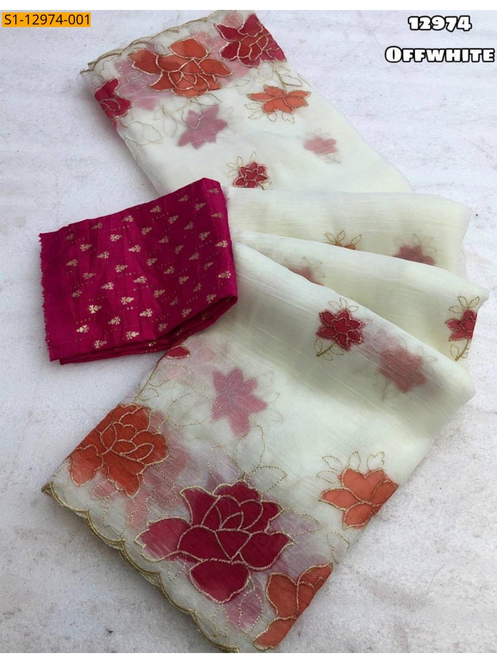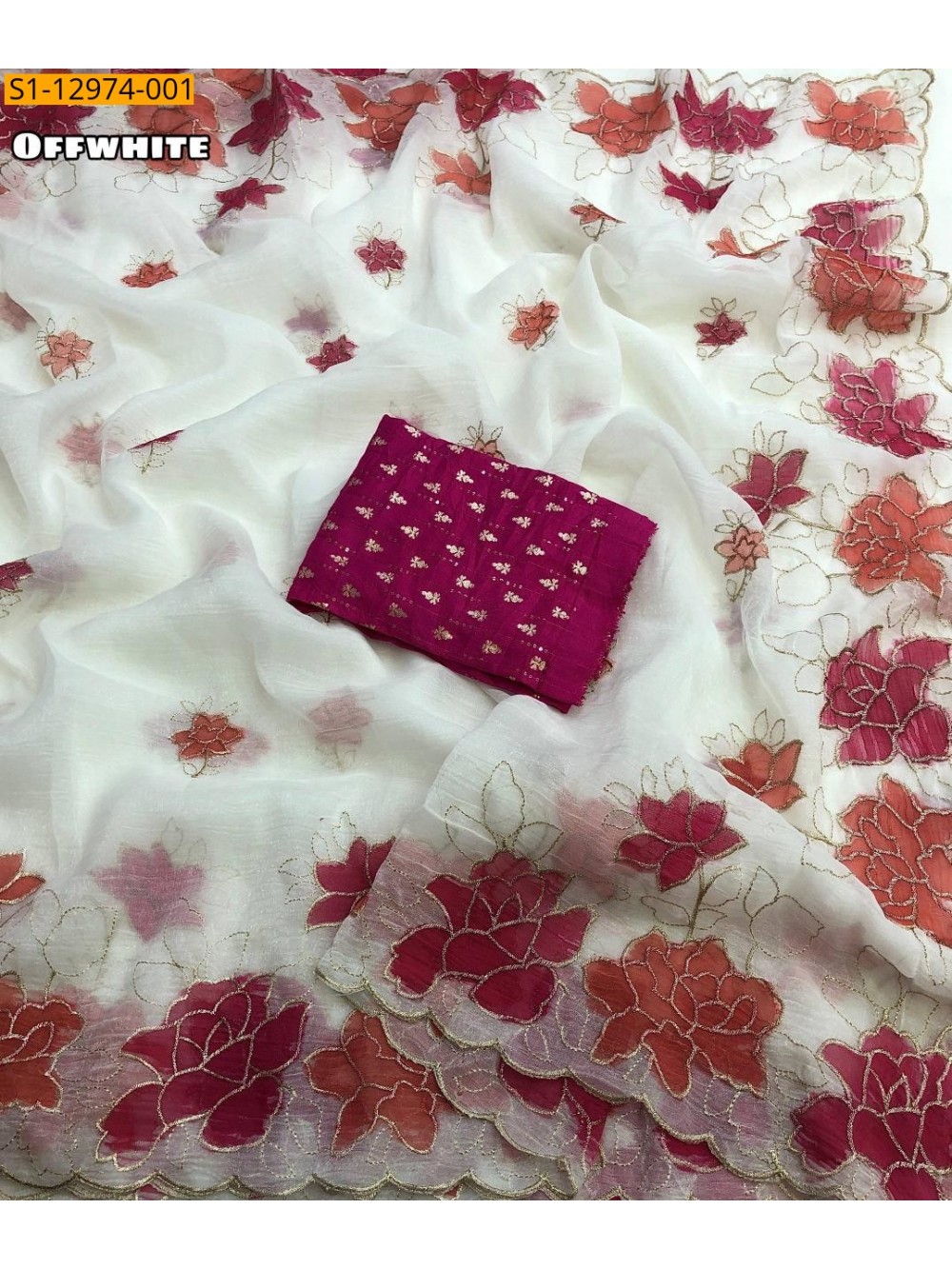 Off White Crunchy embroidery Saree