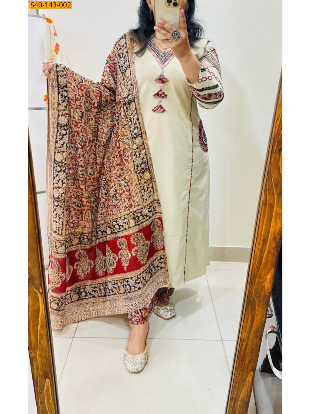 - Fancy Kalamkari Dhabu Cotton 3 piece suit set