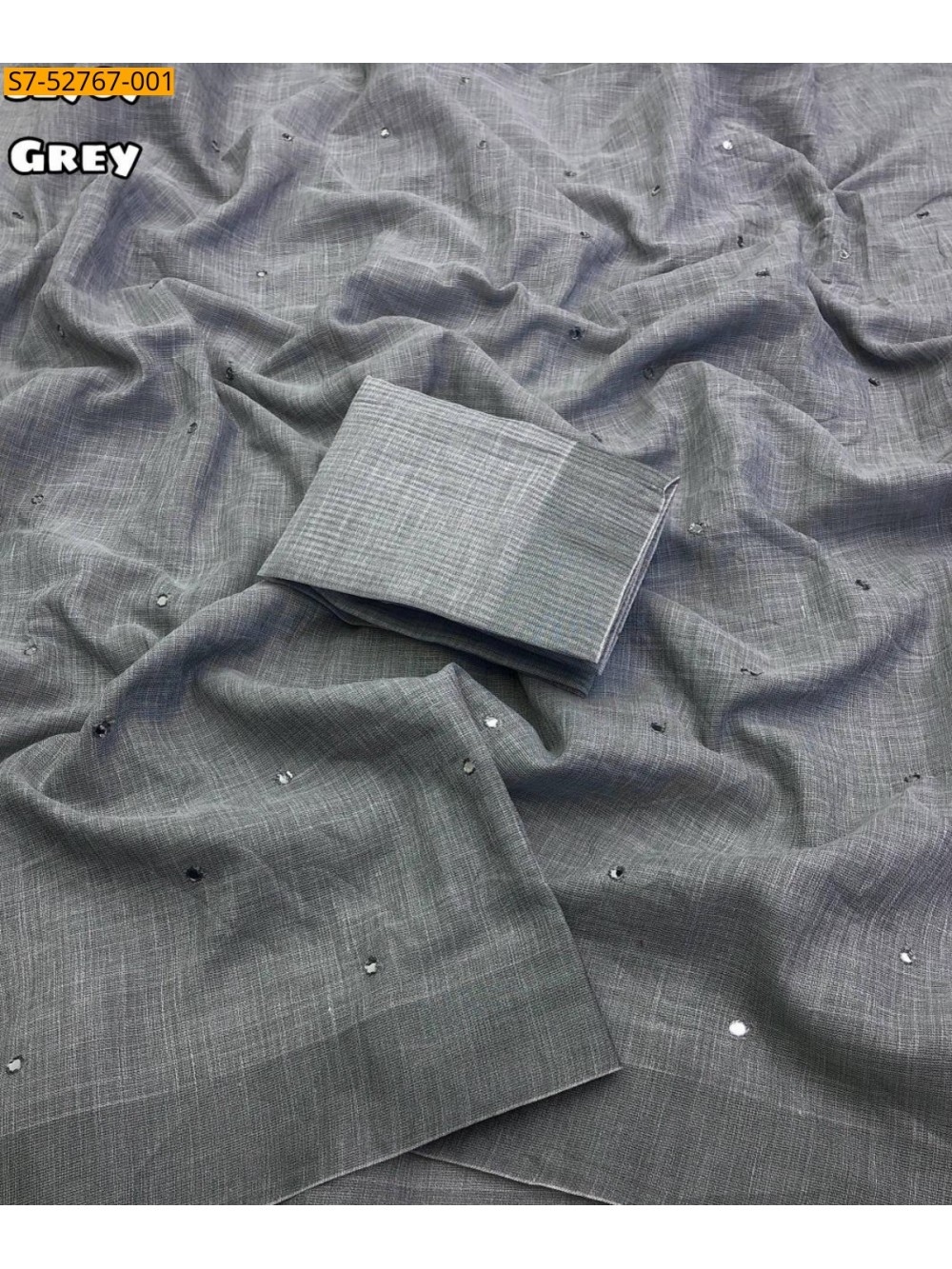 • 90 Count Linen Saree With Embroidery & Foil Mirror Work