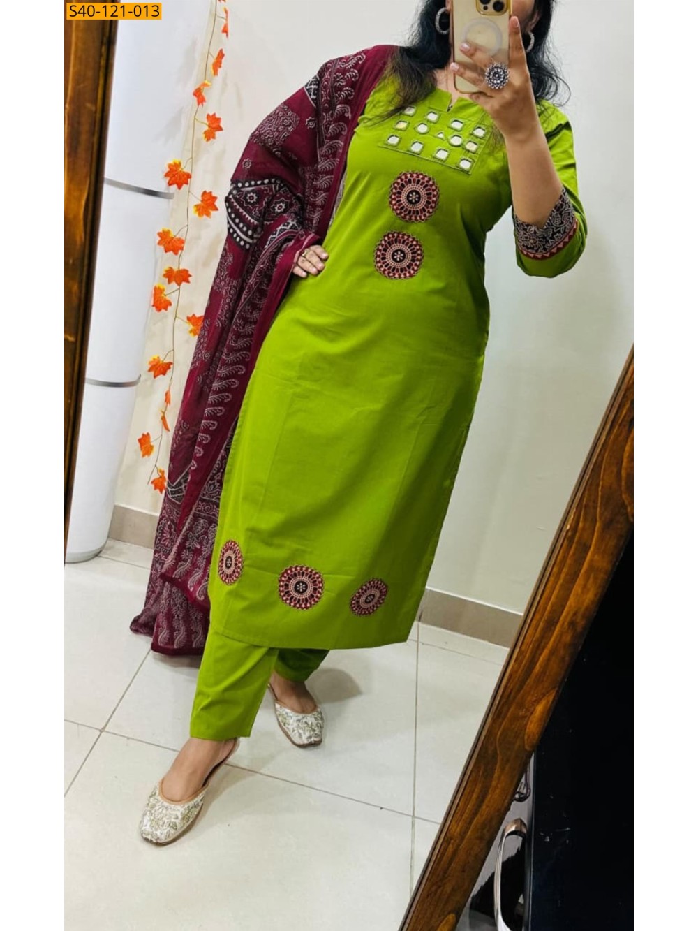 Green Fancy Premium Rich Cotton 3 piece suit set