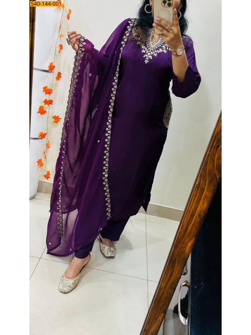 Purple Fancy Roman Silk Festive 3 piece suit set