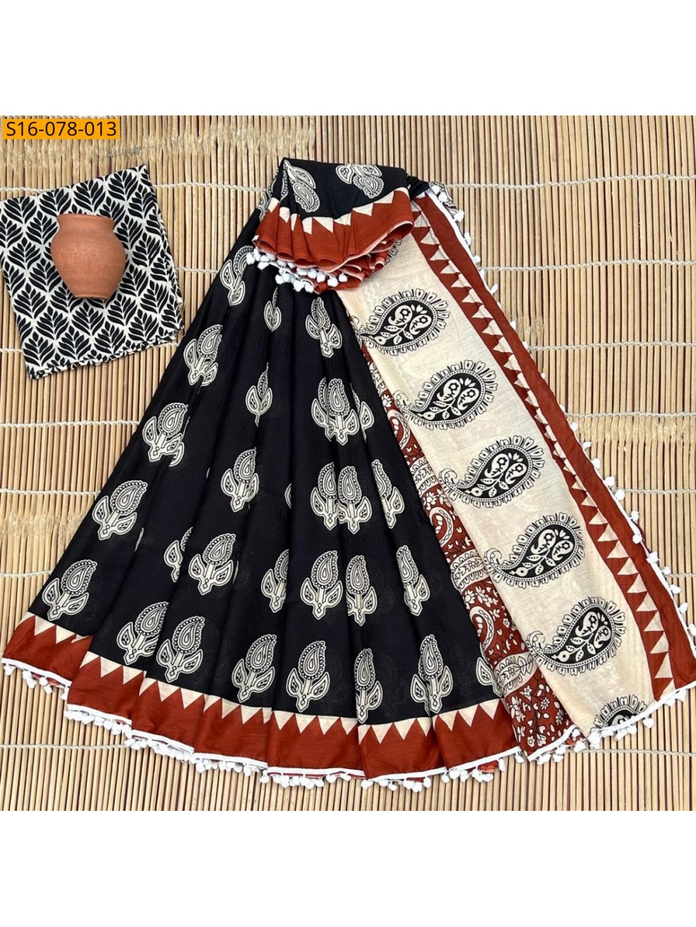 Black Mulmul cotton sarees With Pompom