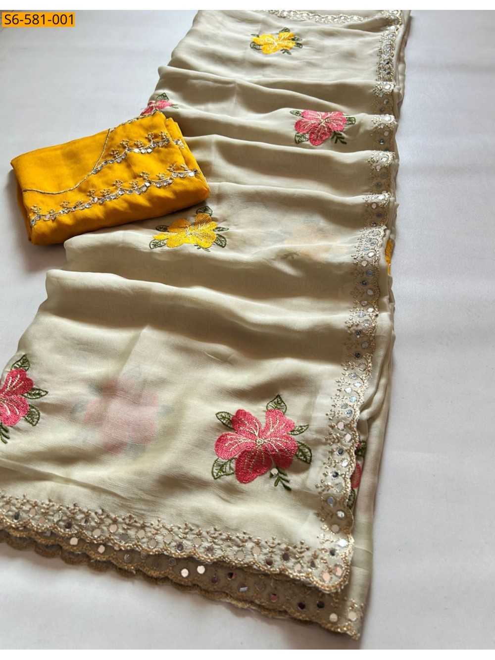 - Mirror work and cutwork border