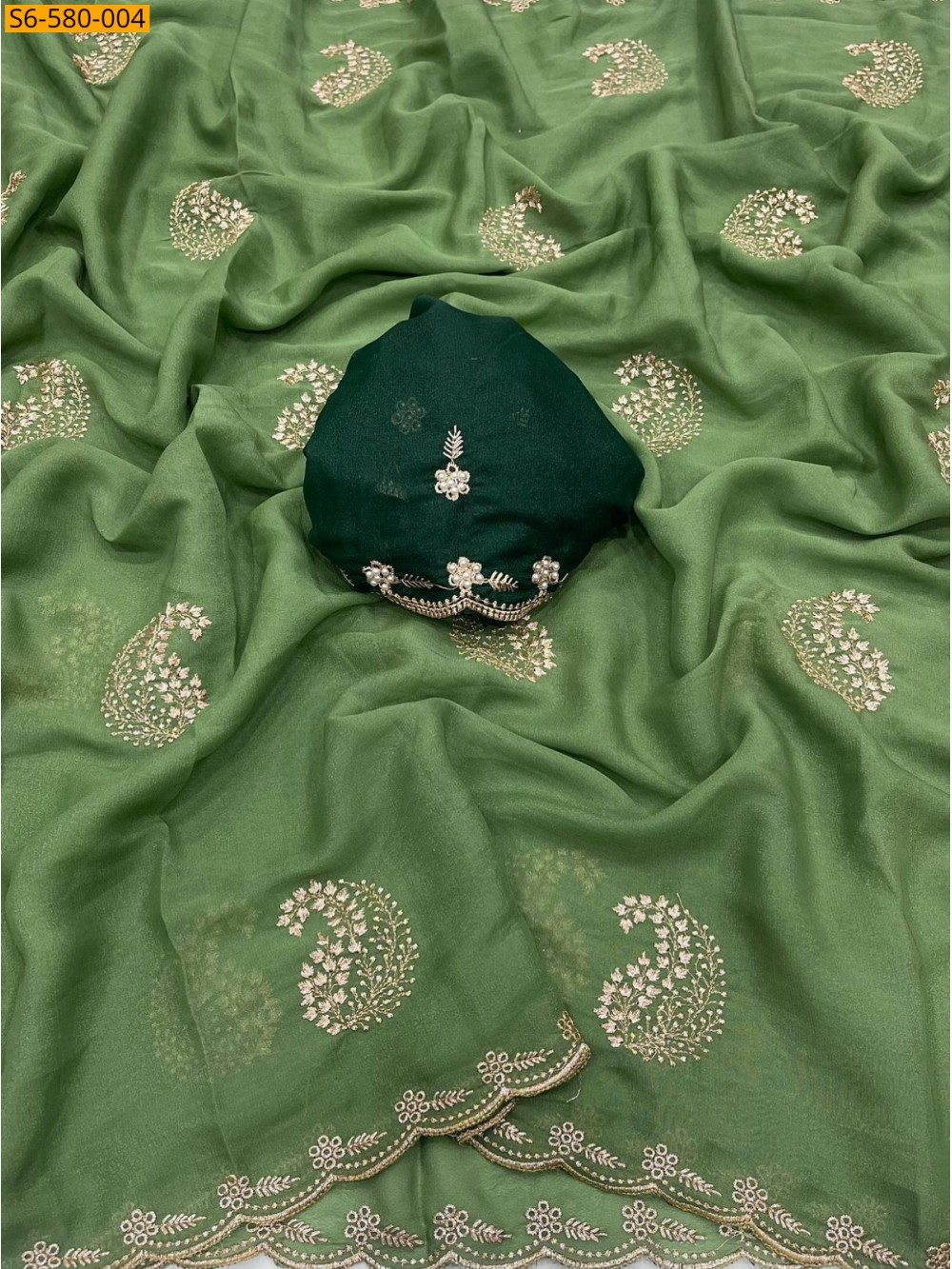 Green Star Georgette Saree