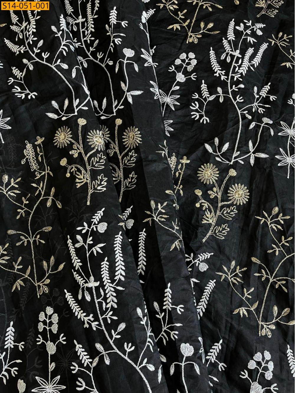 - White and golden embroidery thread work all over the saree