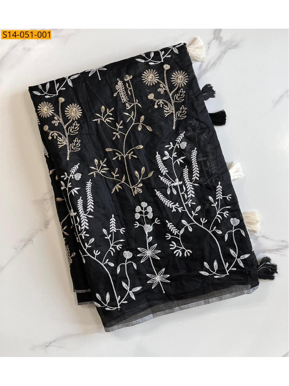 - Pallu with rich cotton tassels