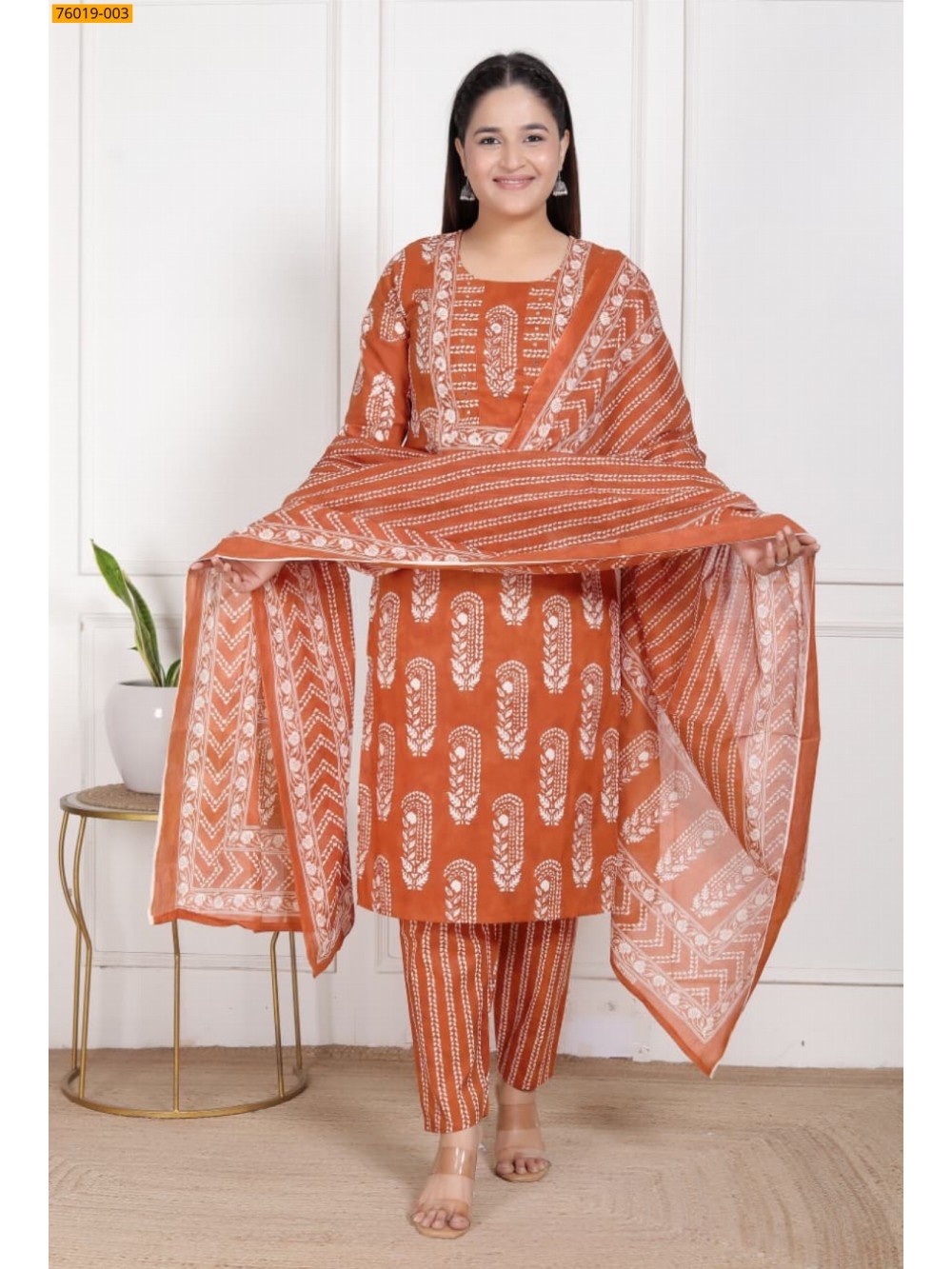 Orange Premium Cotton Salwar Stitched Suit