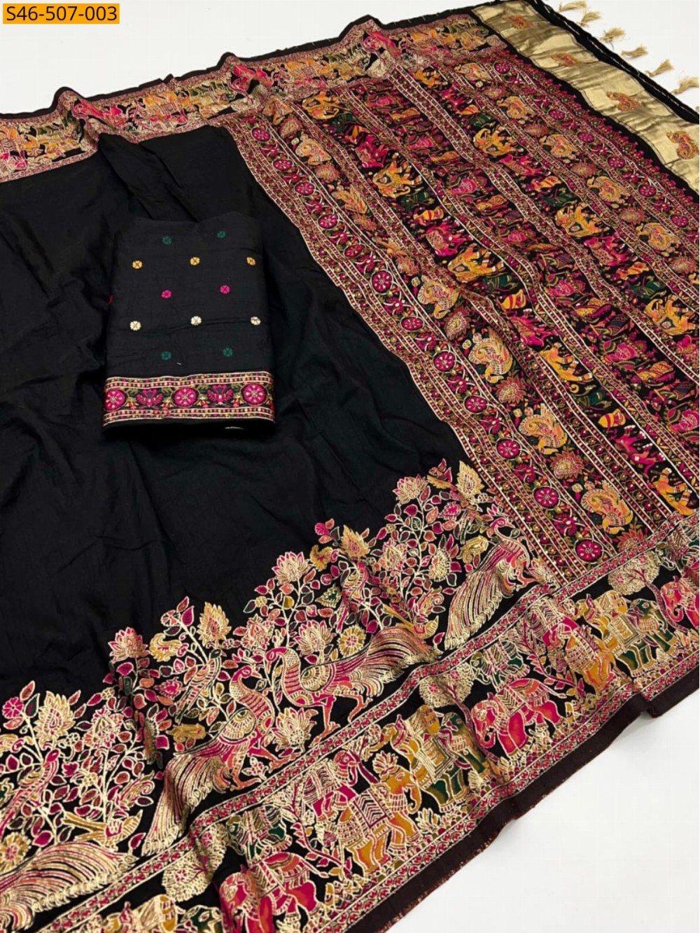 Black Rajwadi viscose pashmina silk saree