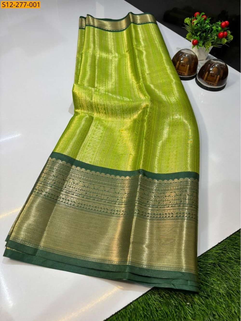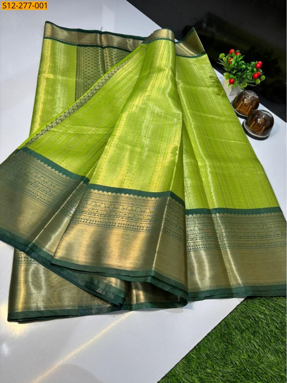 Green Banarsi semi kataan soft silk Saree