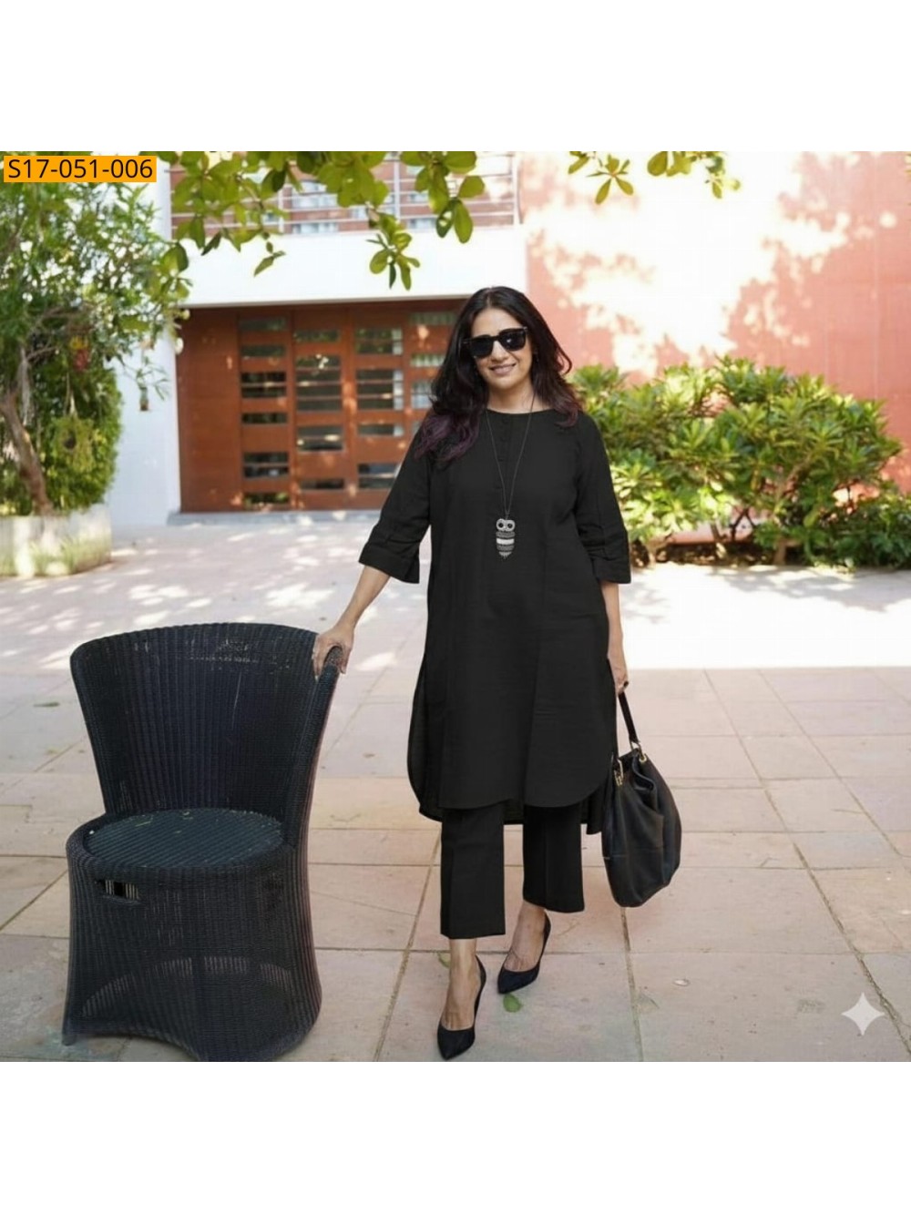 Black Cotton Slub Kurti with Pant set