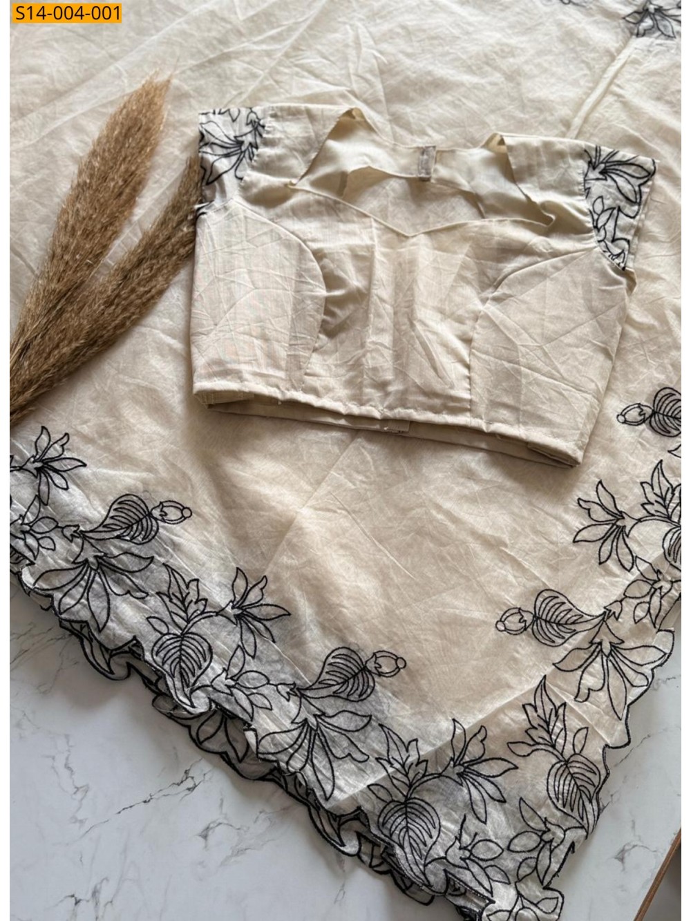Blouse Running Chanderi Cotton With Thread Work for sleeves (UNSTICHED)