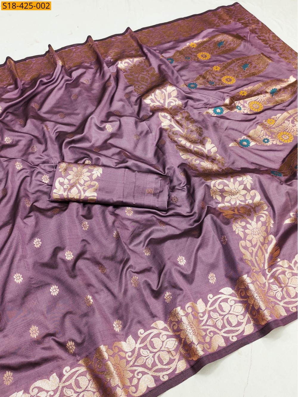 - Zari weaving contrast border