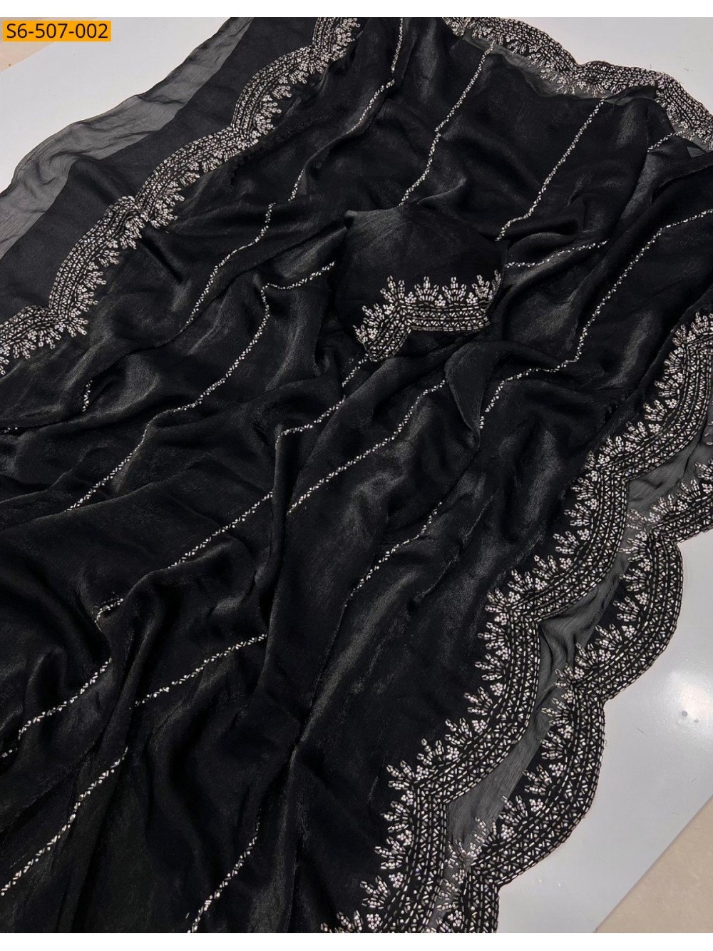 Black Fendy Chiffon Jarkhan Diamond Work Saree