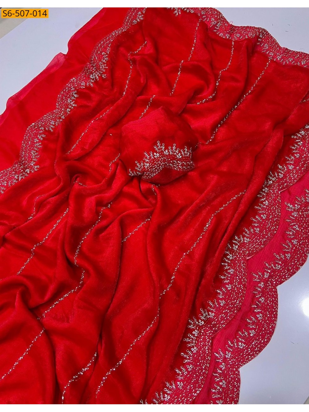 - Jarkhan Diamond Work design all over saree