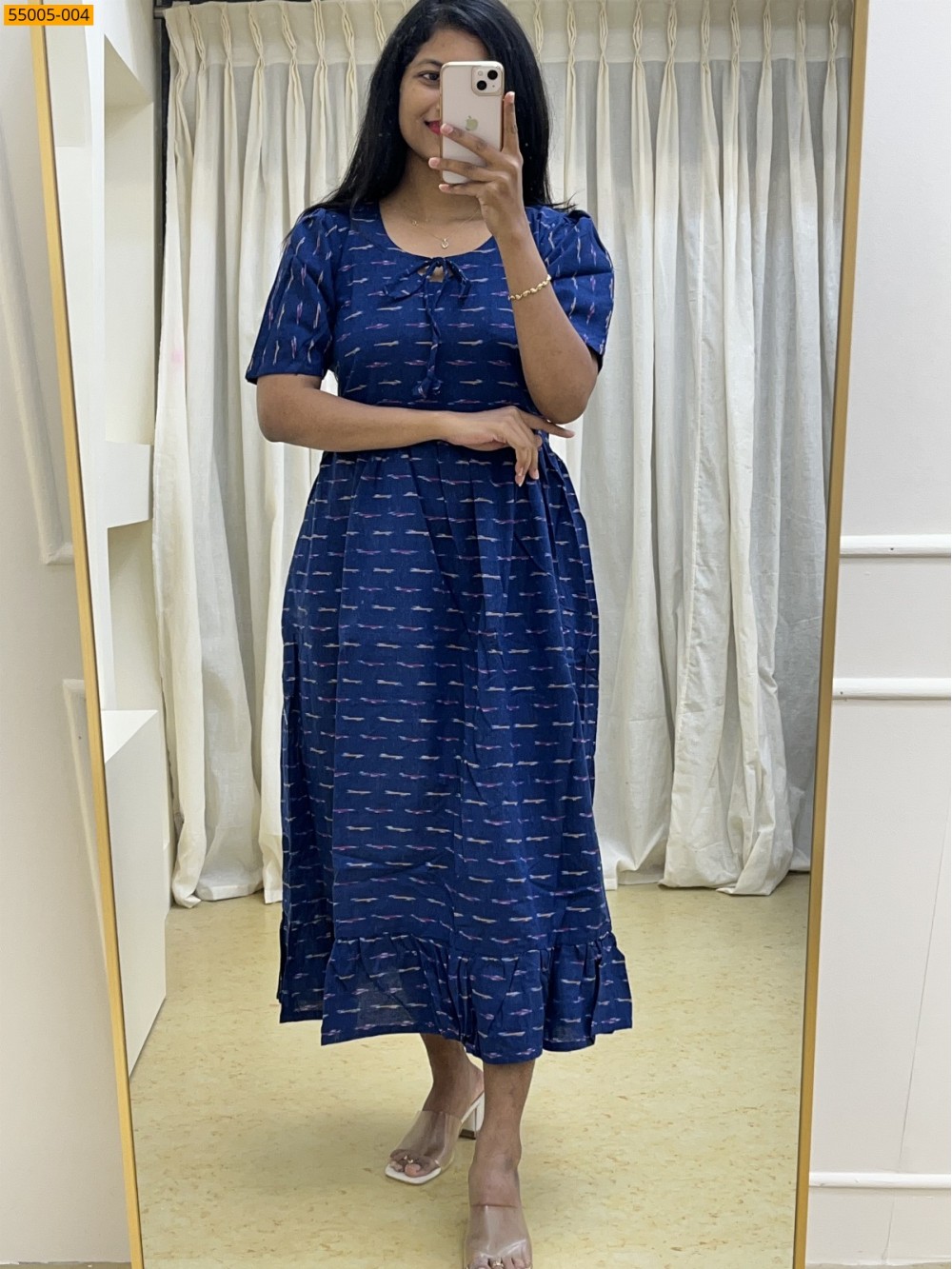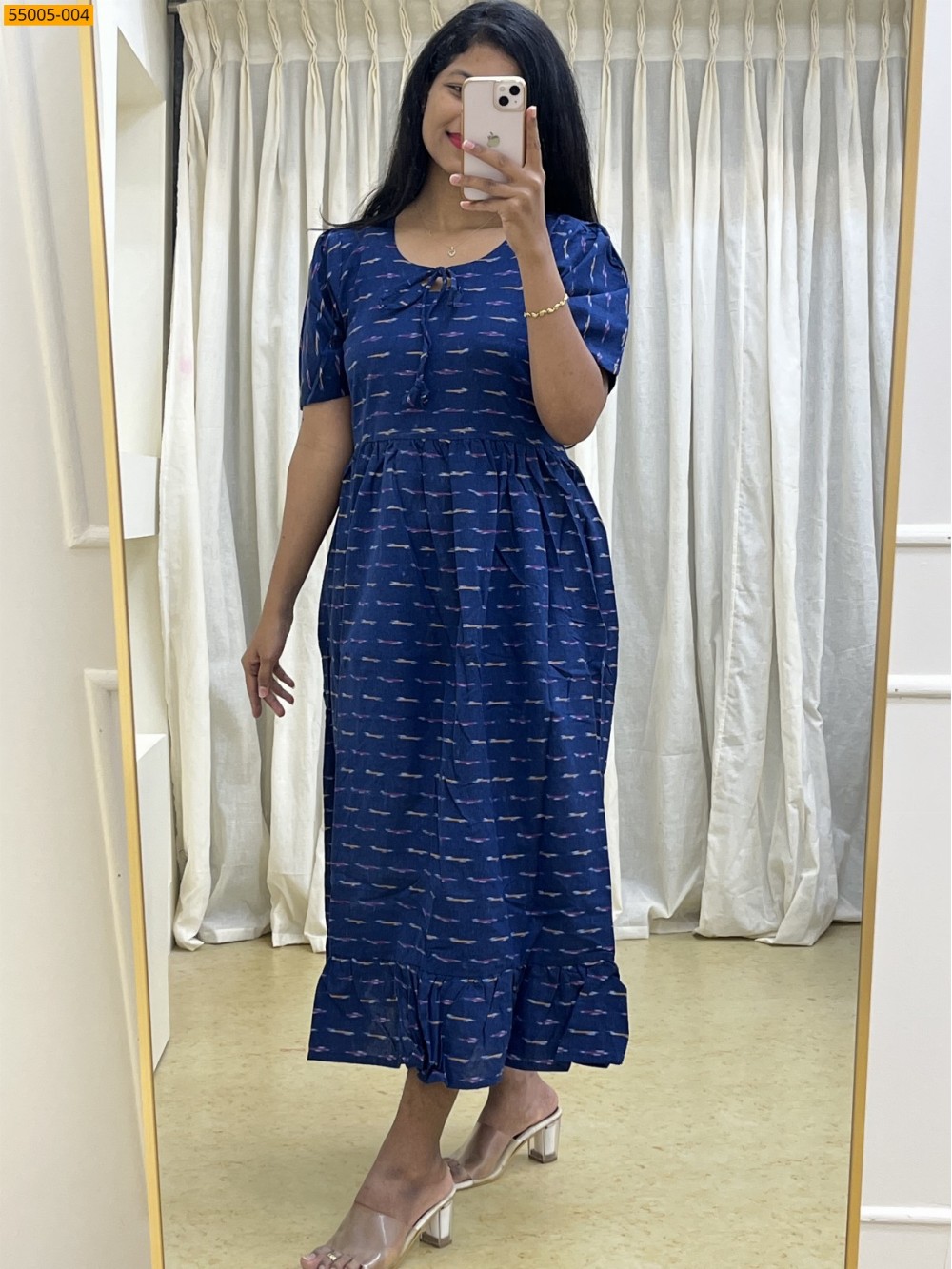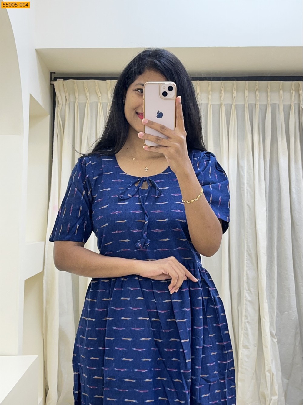 Navy Blue Ikkat Soft Pure Cotton Kurti