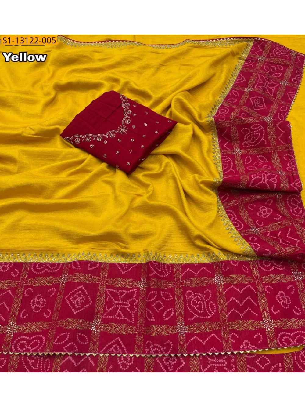 - Vichitra silk with bandani printed Sarees