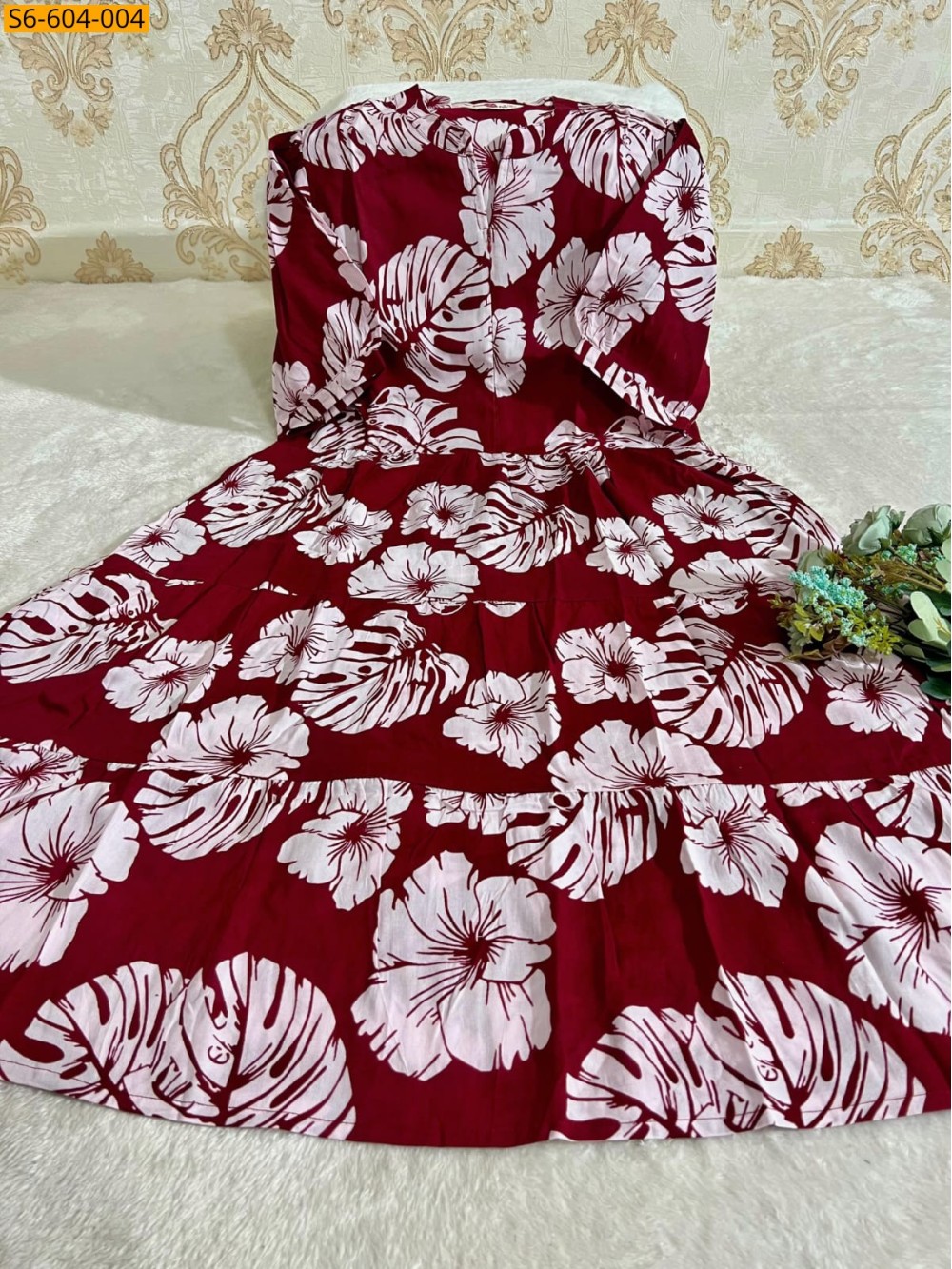 Maroon Rayan Cotton Gown