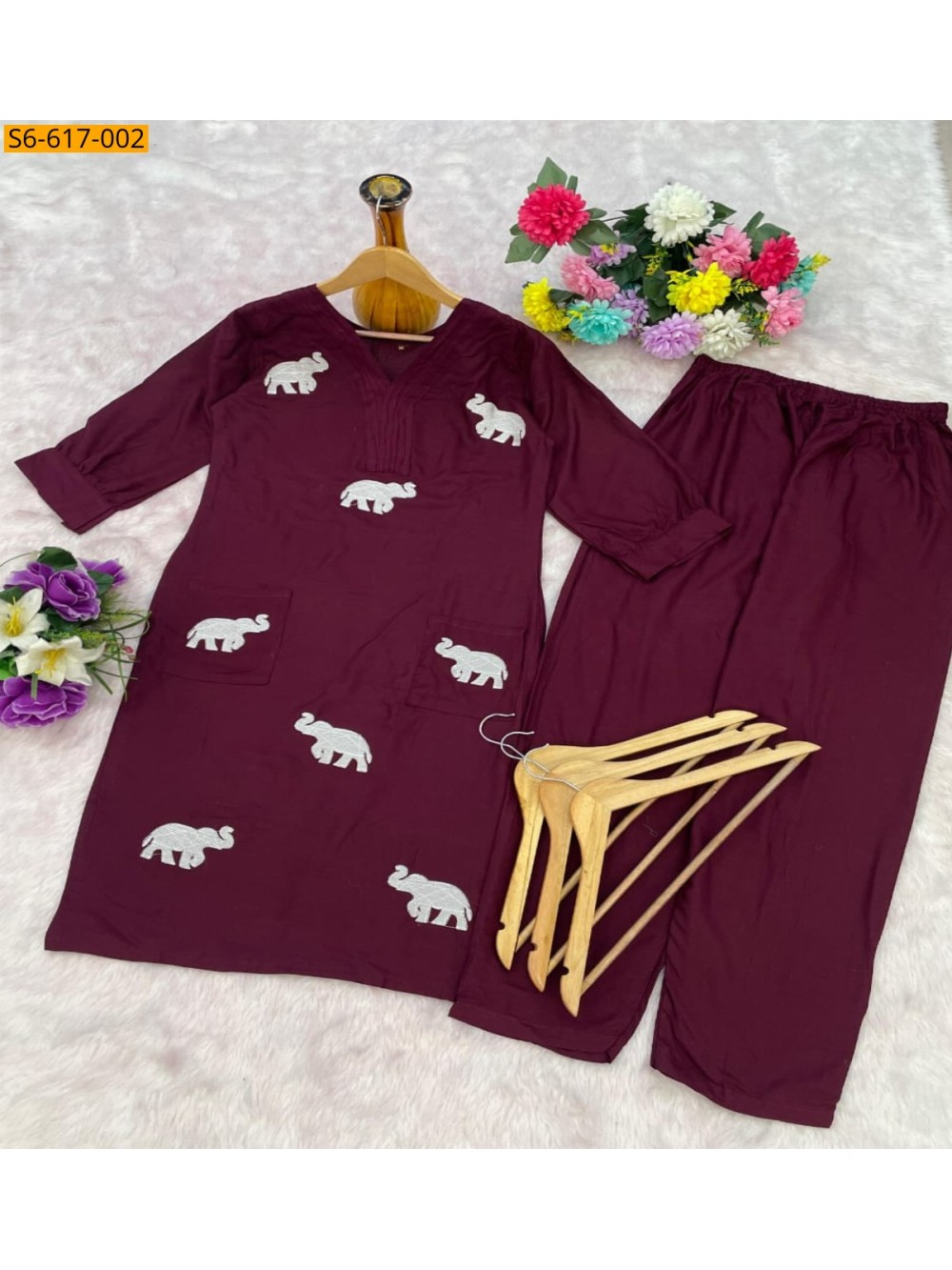 - Embroidery work elephant design on the top