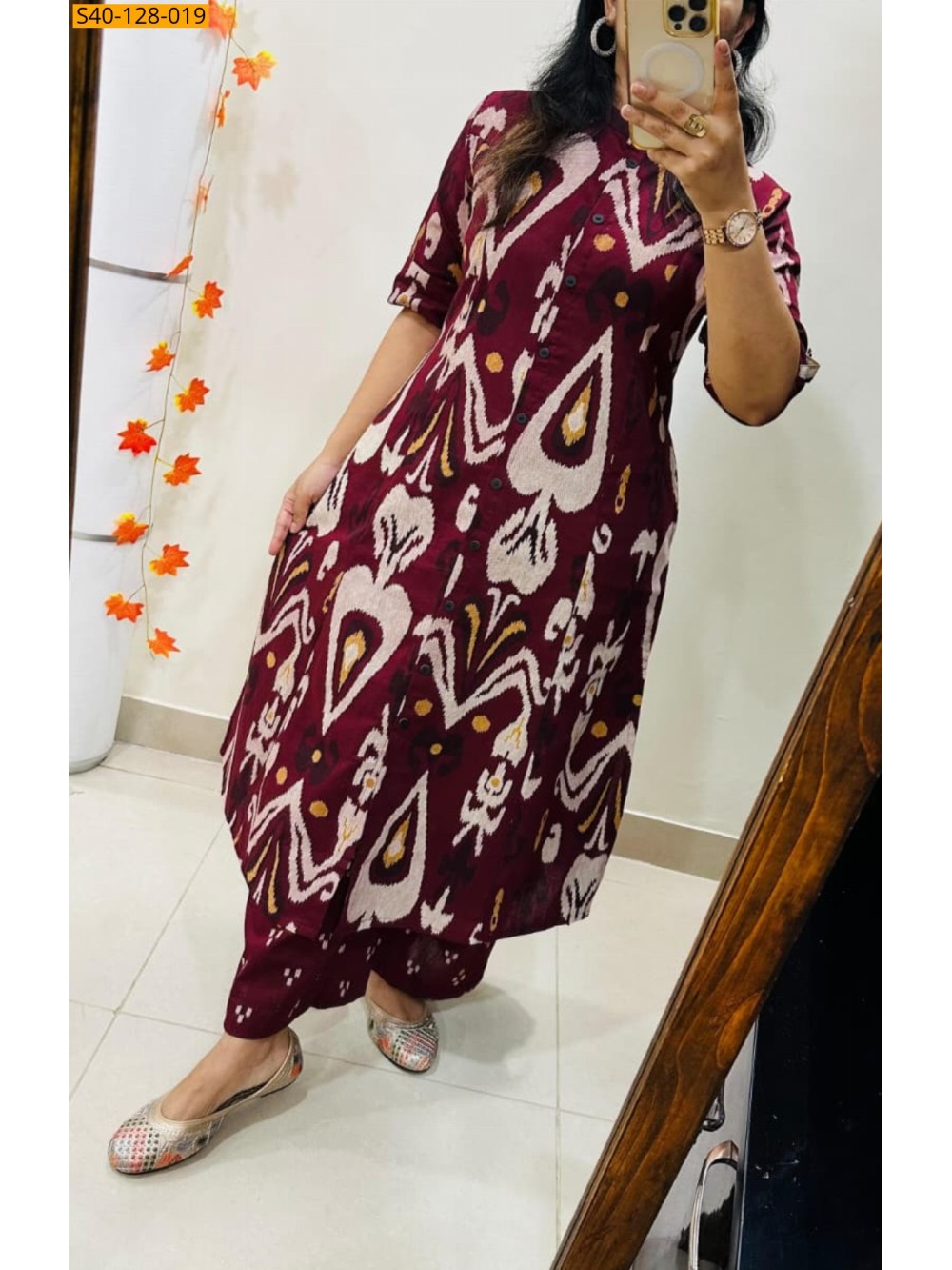 Wine Fancy Aline cotton Kurti set