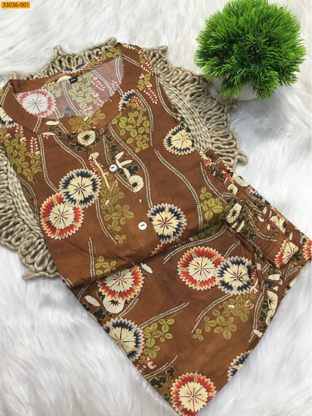 Brown Rayon Cotton Co-ord Readymade Set