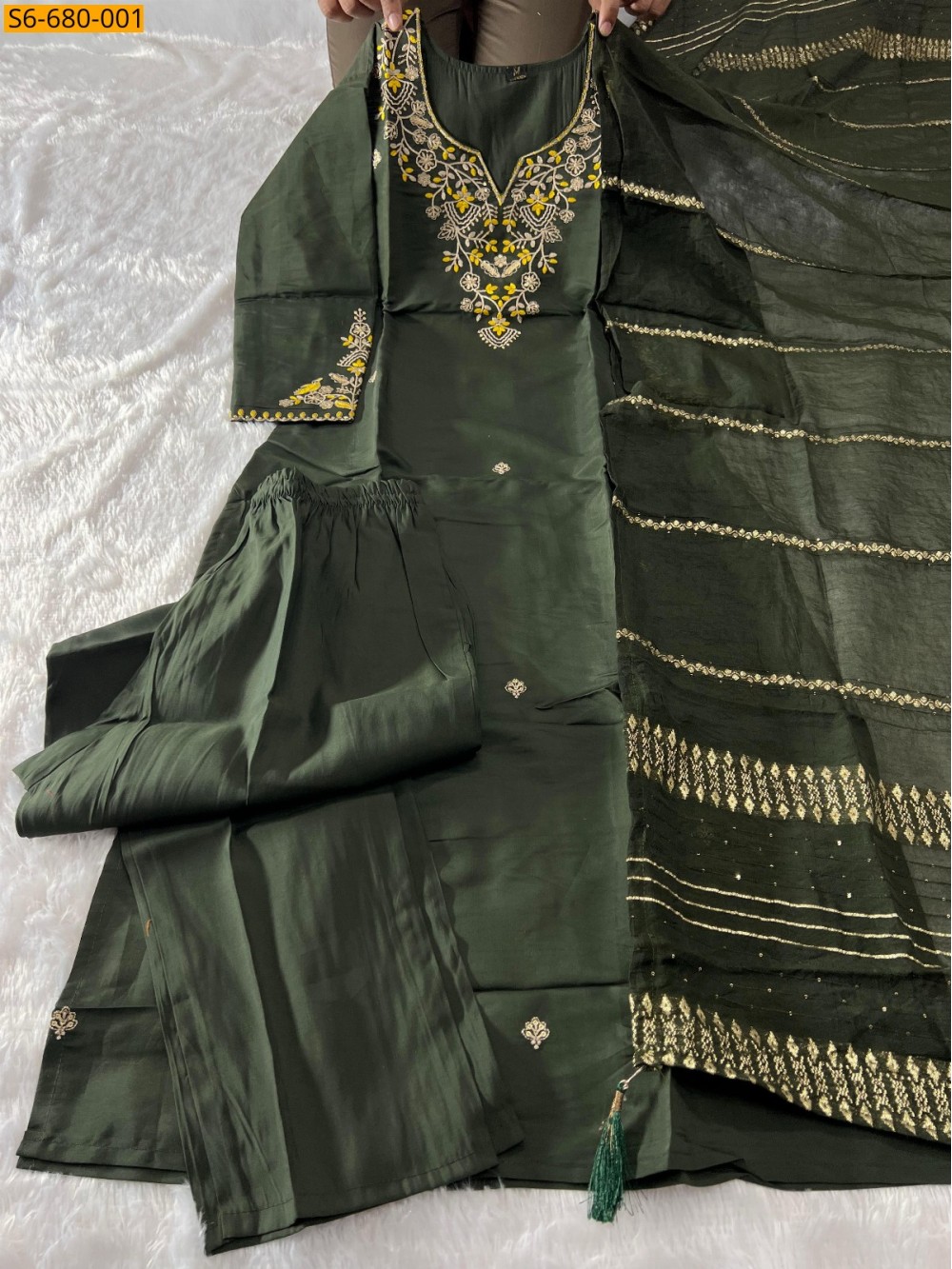 - Roman silk kurti Pant Dupatta Set