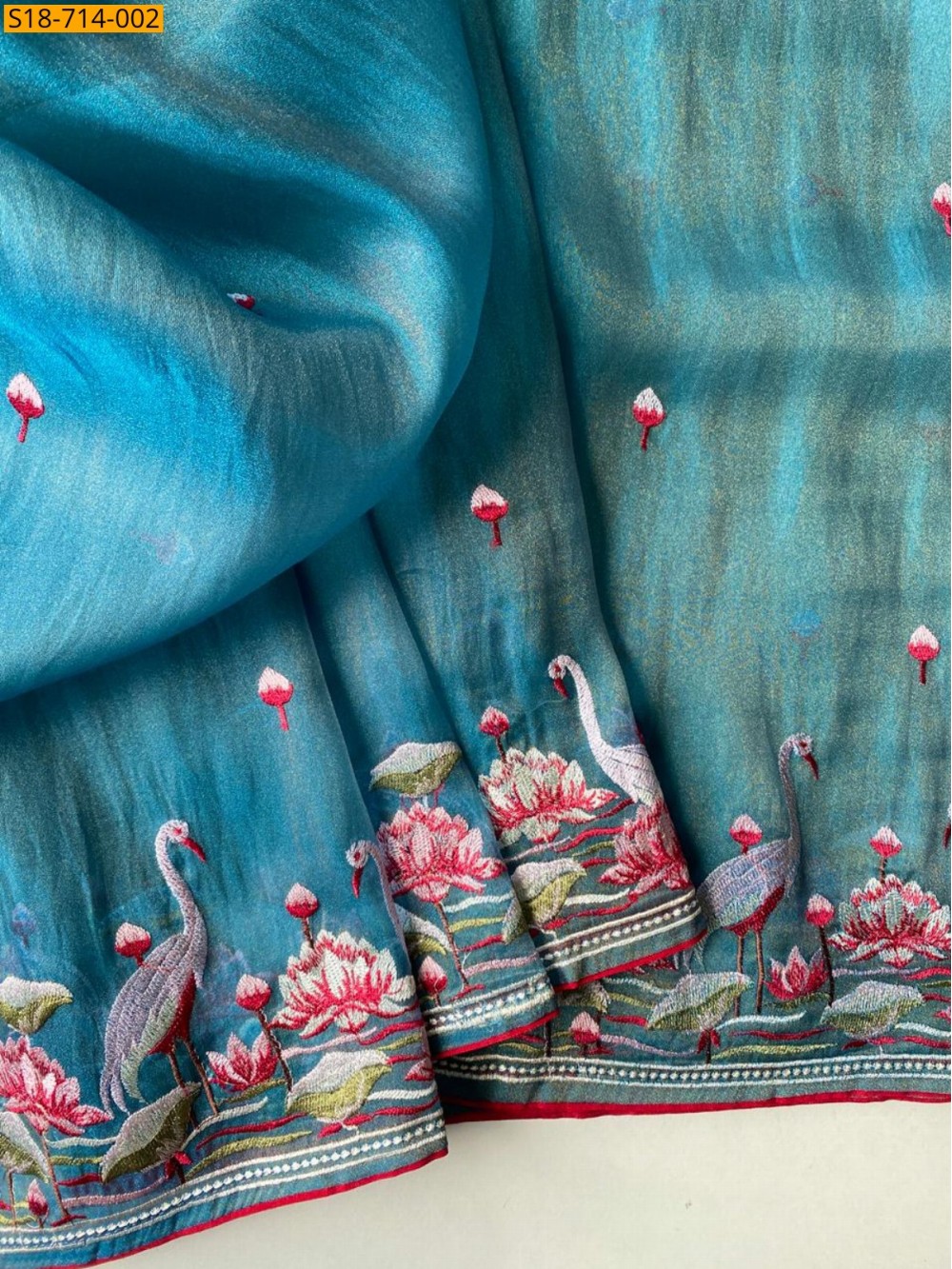• Intricate multi thread embroidery border