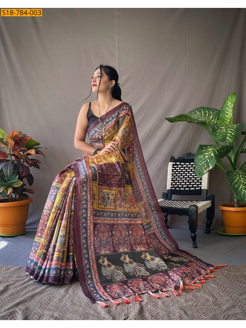 - Printed Pallu with tassels