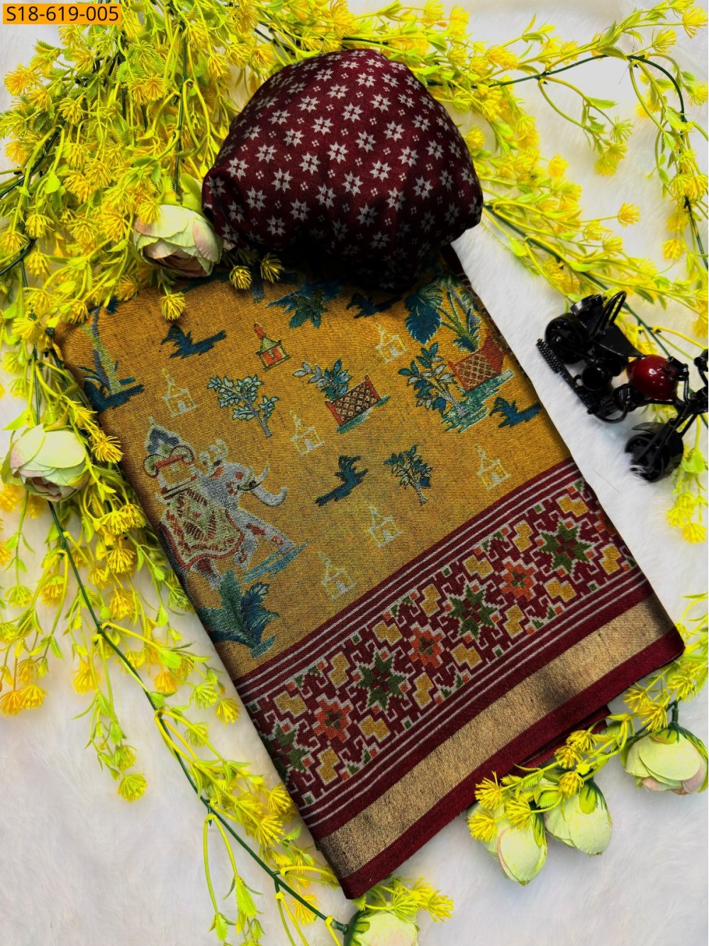 Mustard yellow Soft kashmiri cotton silk sarees