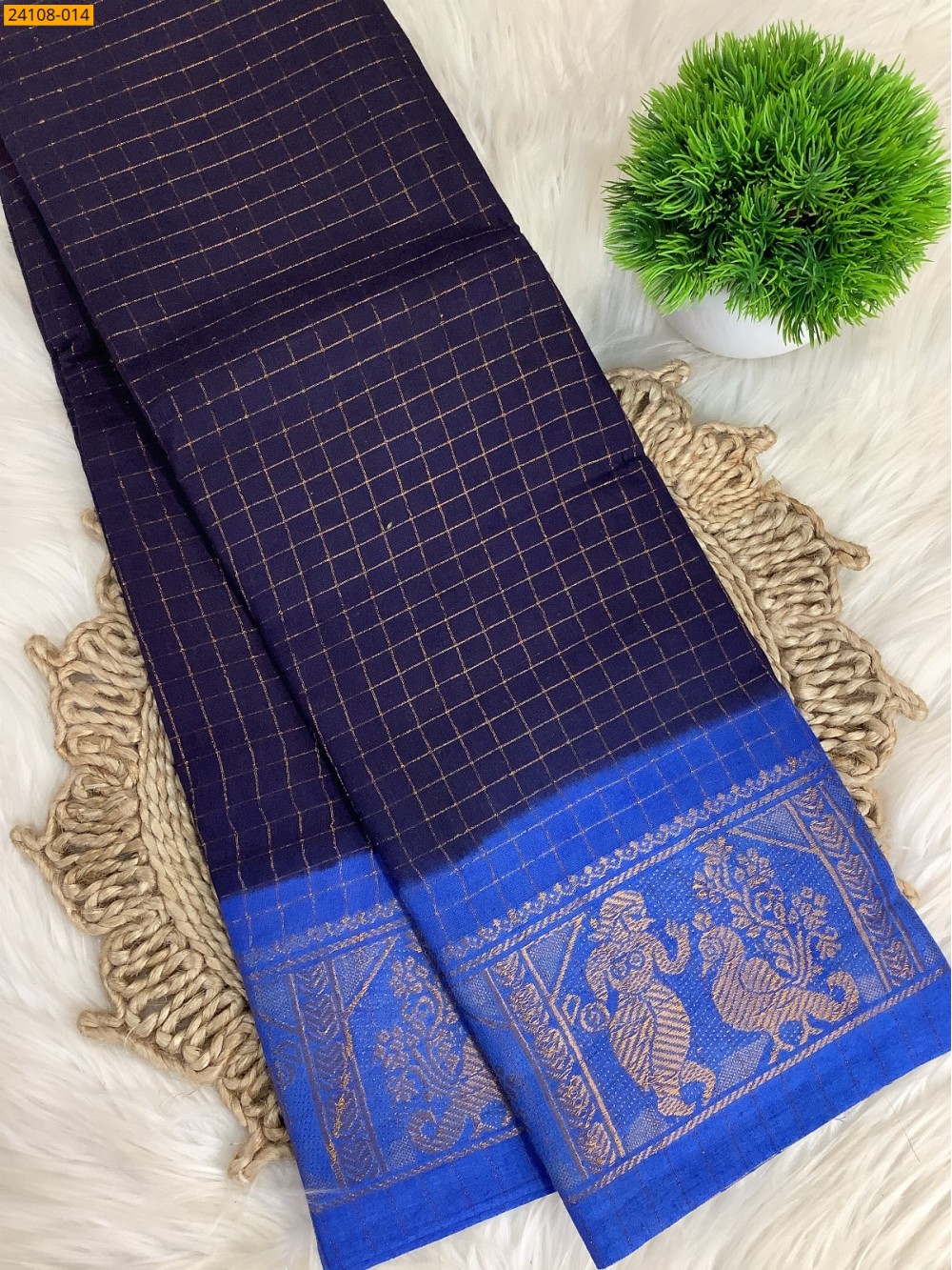 Navy Blue Sungudi Cotton Zari kattam Sarees