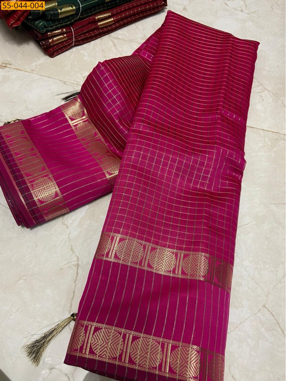 - Zari checked design all over the saree