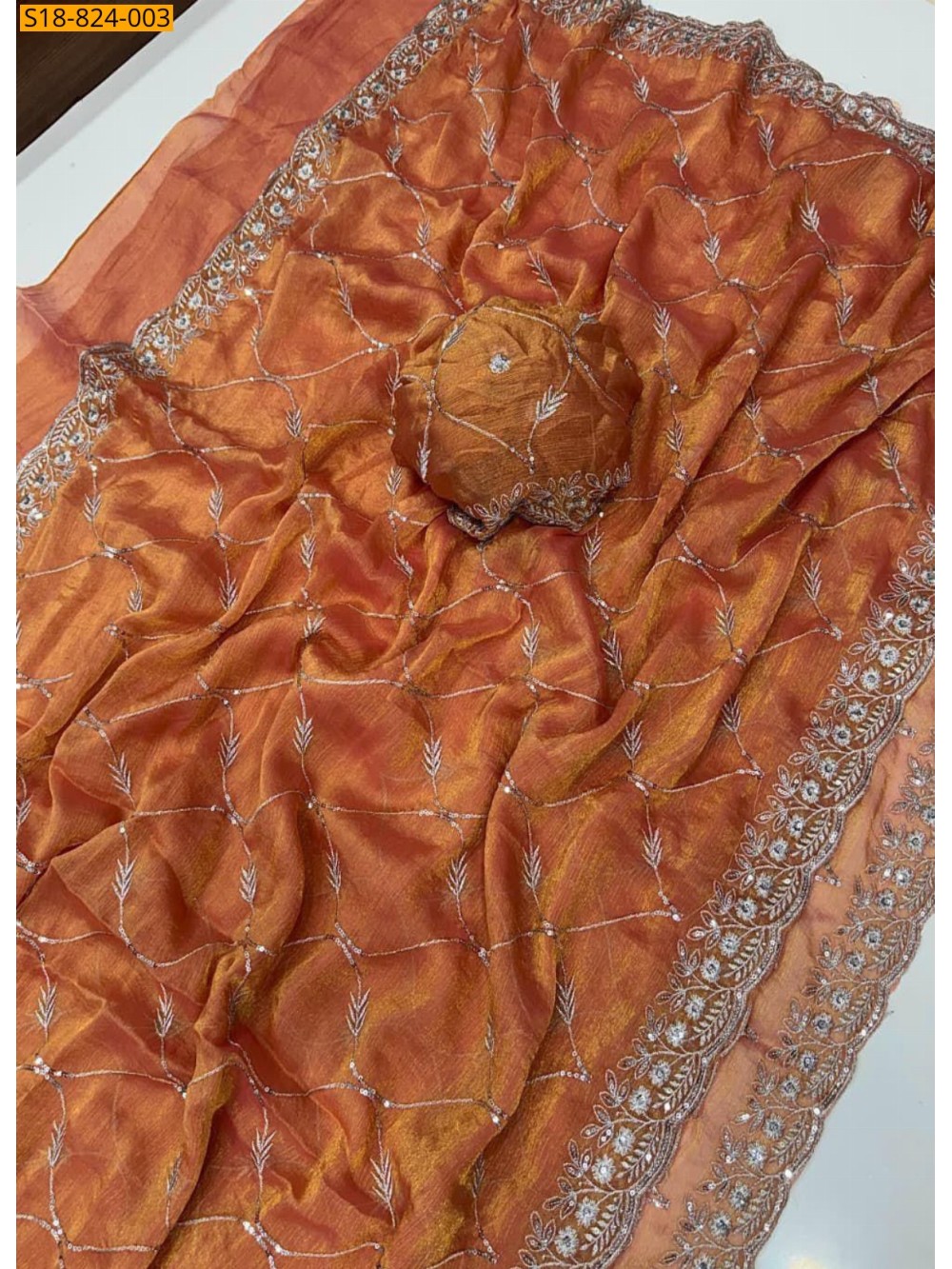 Orange Fancy Chiffon sequence work sarees