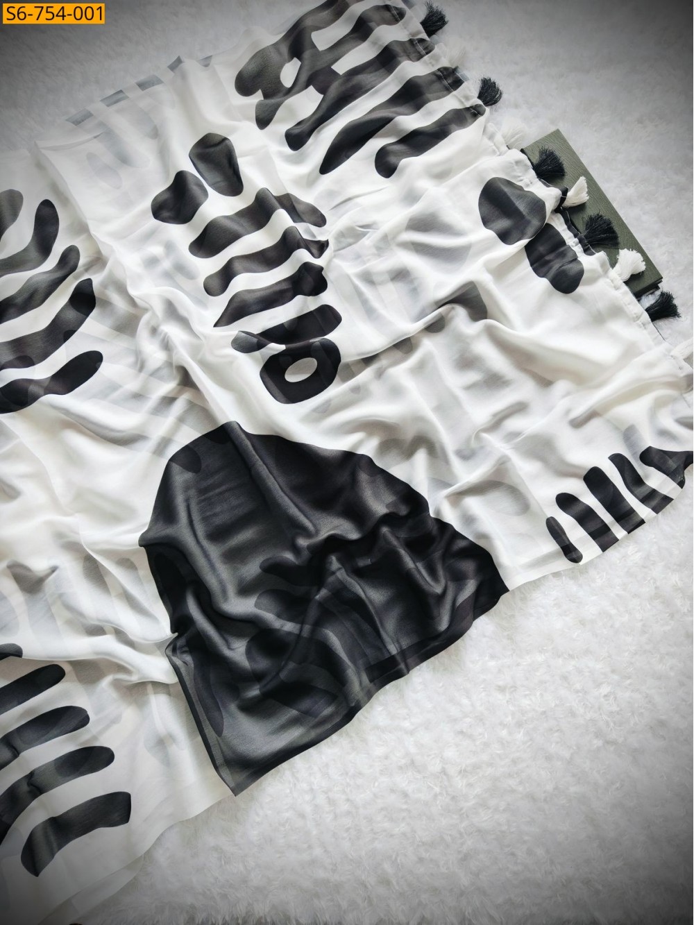 • Black & White digital print all over the saree