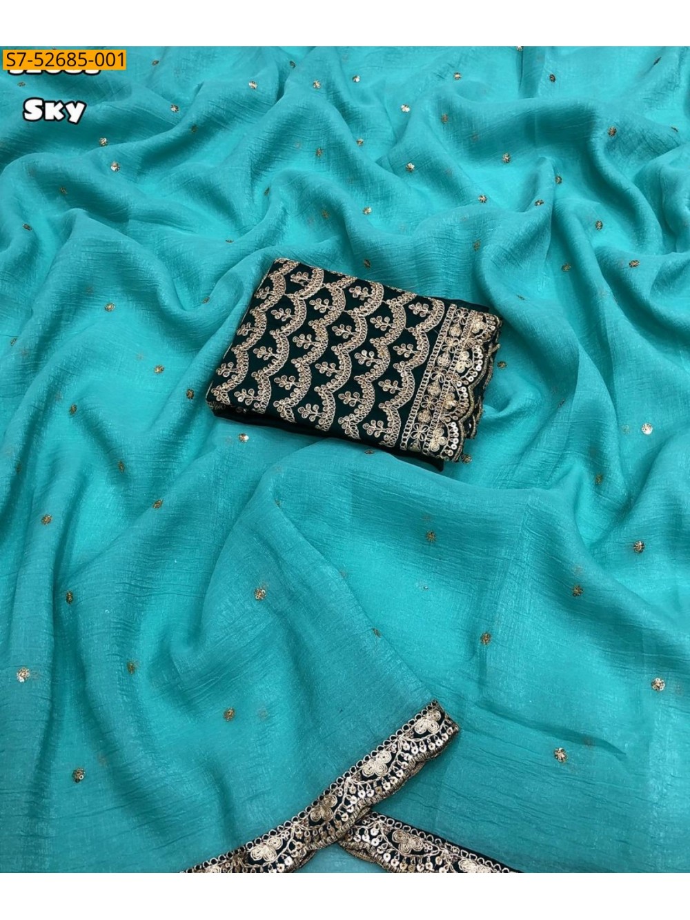 Sky blue Fancy Crunchy crush Embroidery Saree