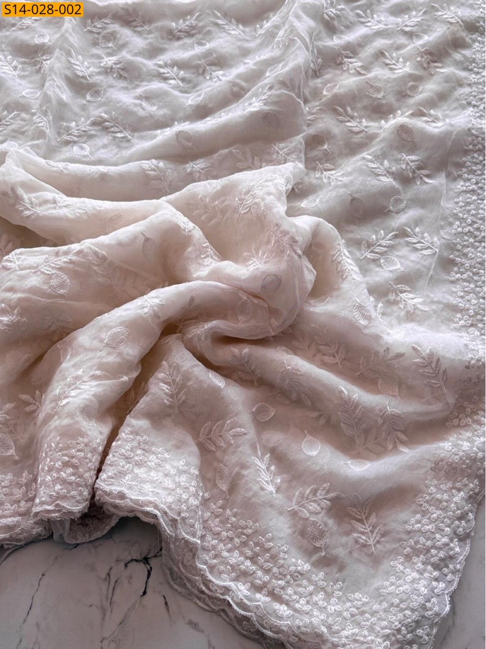 White Soft Chiffon Saree With Thread Work