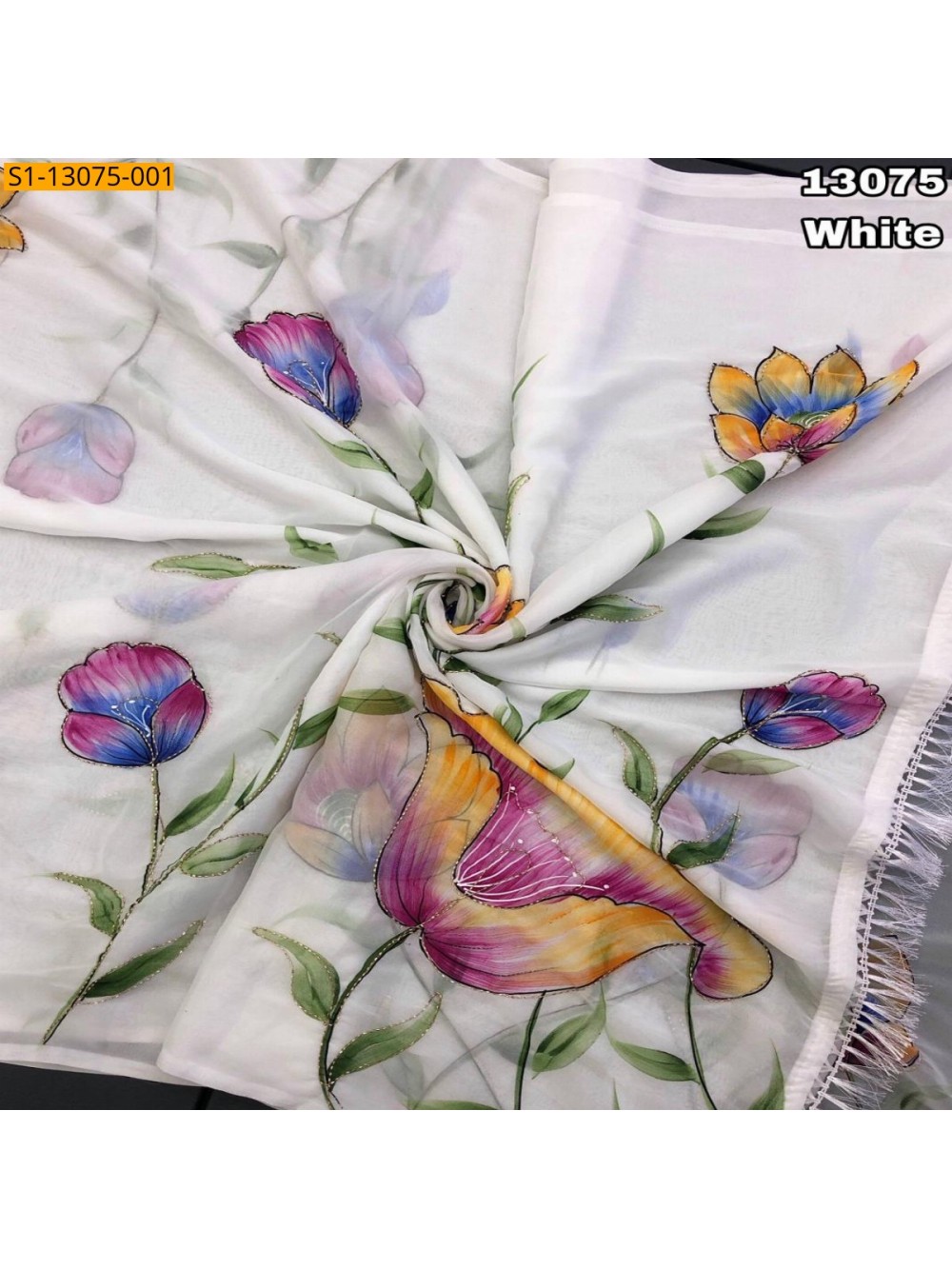 - hand brush floral print with embroidery cutdana arka outline