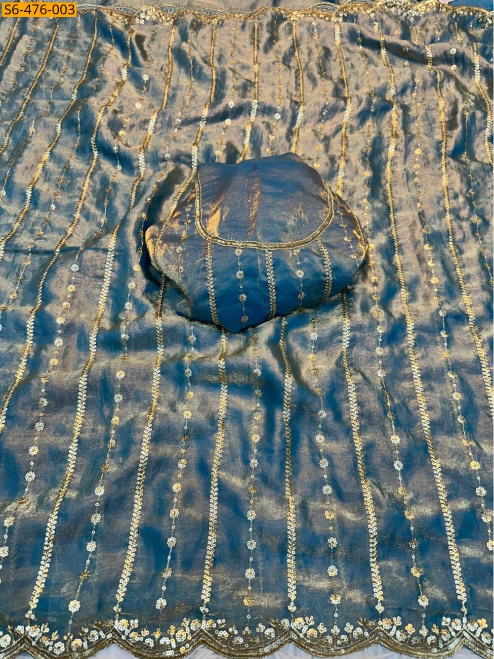 - With Sequins embroidery work in space silk blouse