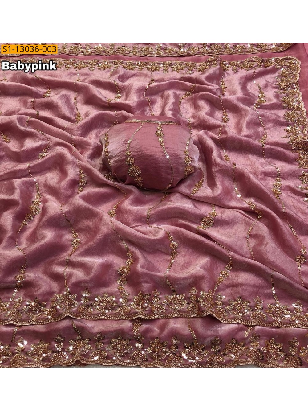 • Fendy satin with cutdana and moti handwork with lehariya design all over the saree