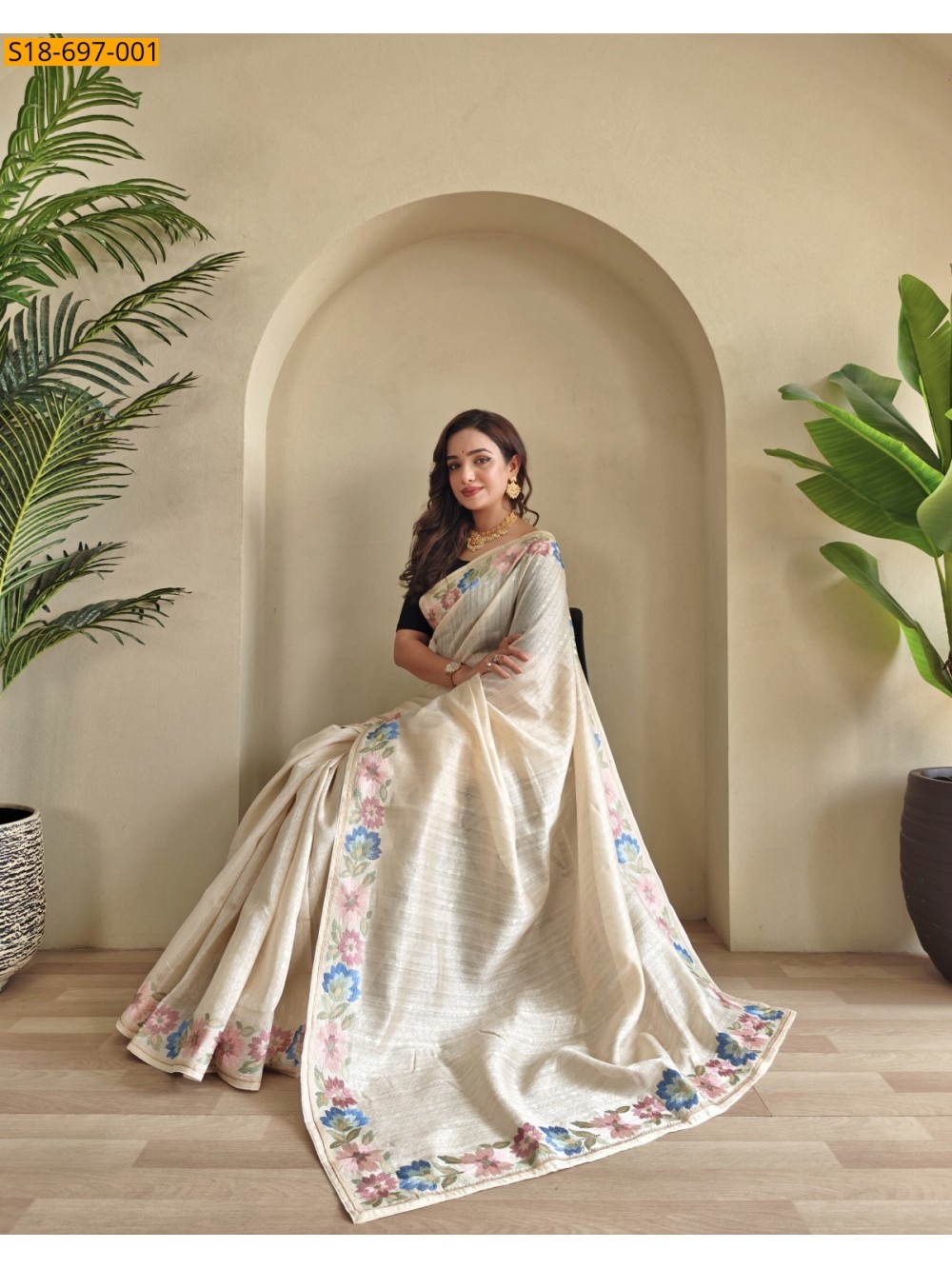 • Tussar embroidery Sarees