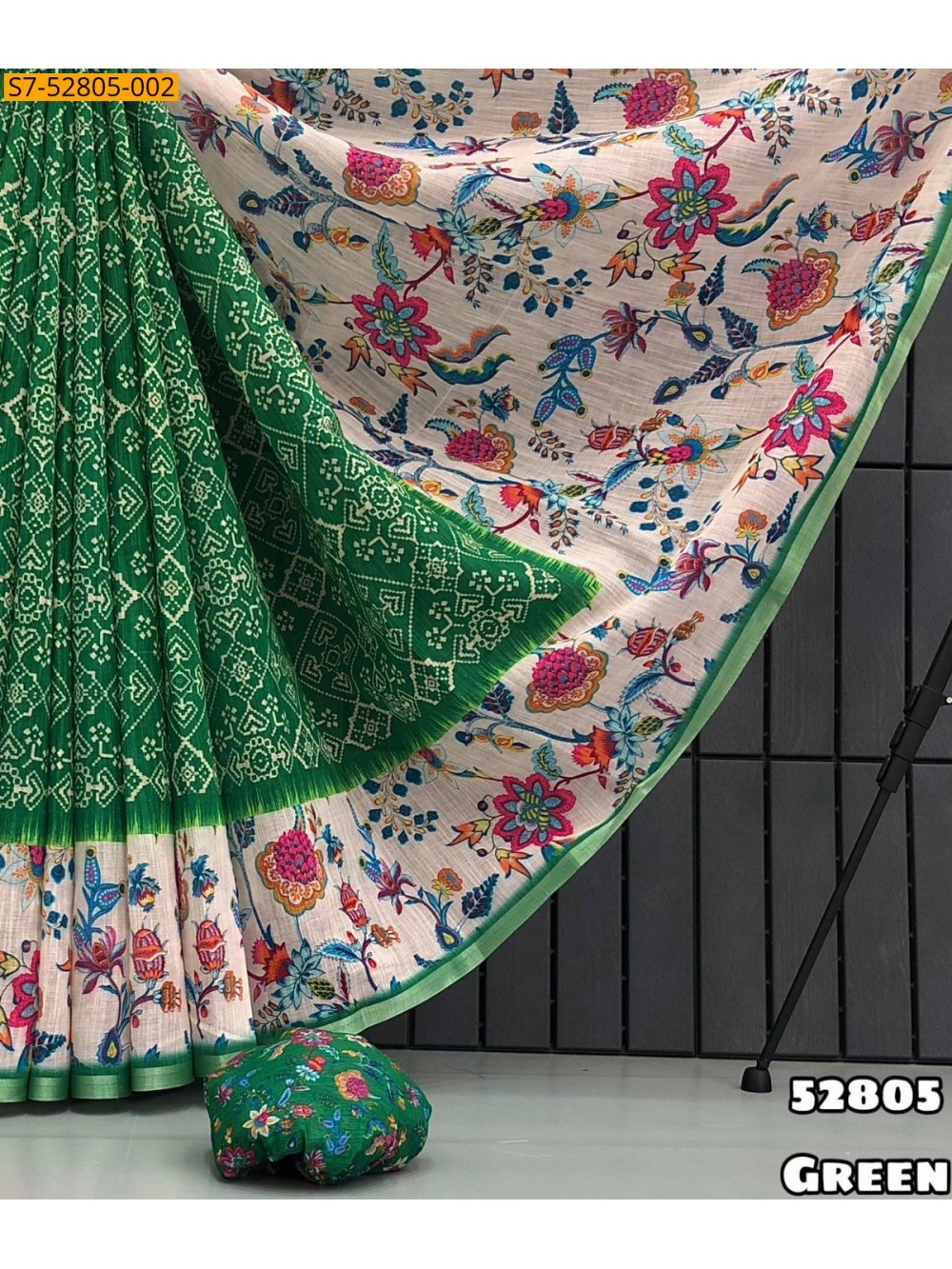 Green Fancy Soft linen patola design Saree
