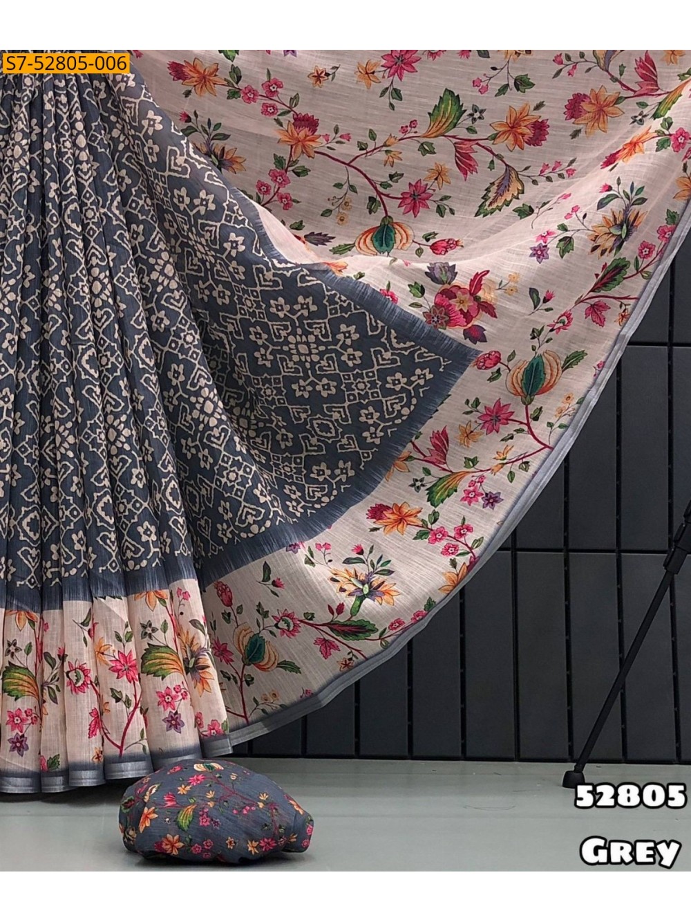 - Floral Print & zari patti border