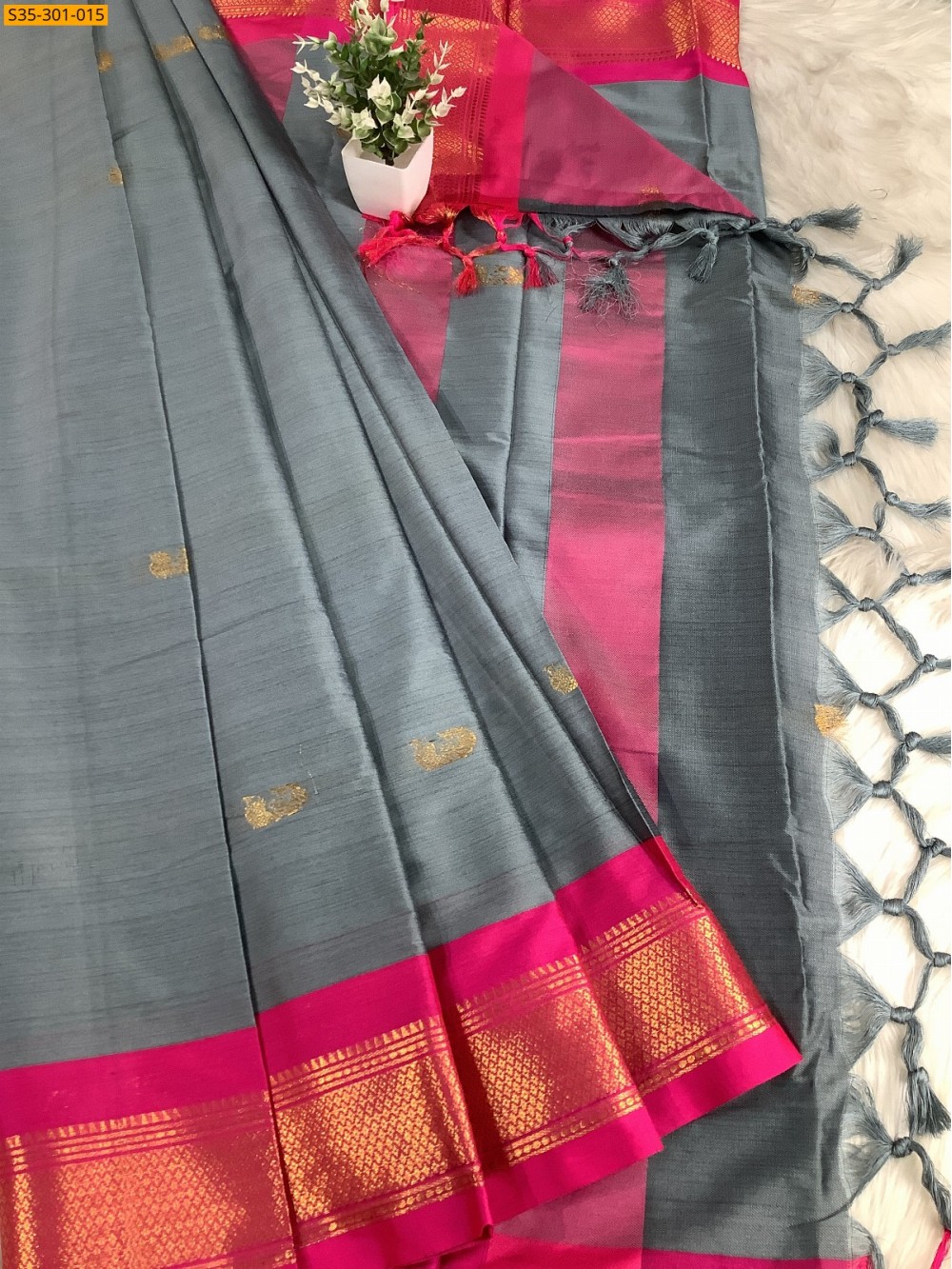 Gray Mercerised Cotton Silk sarees