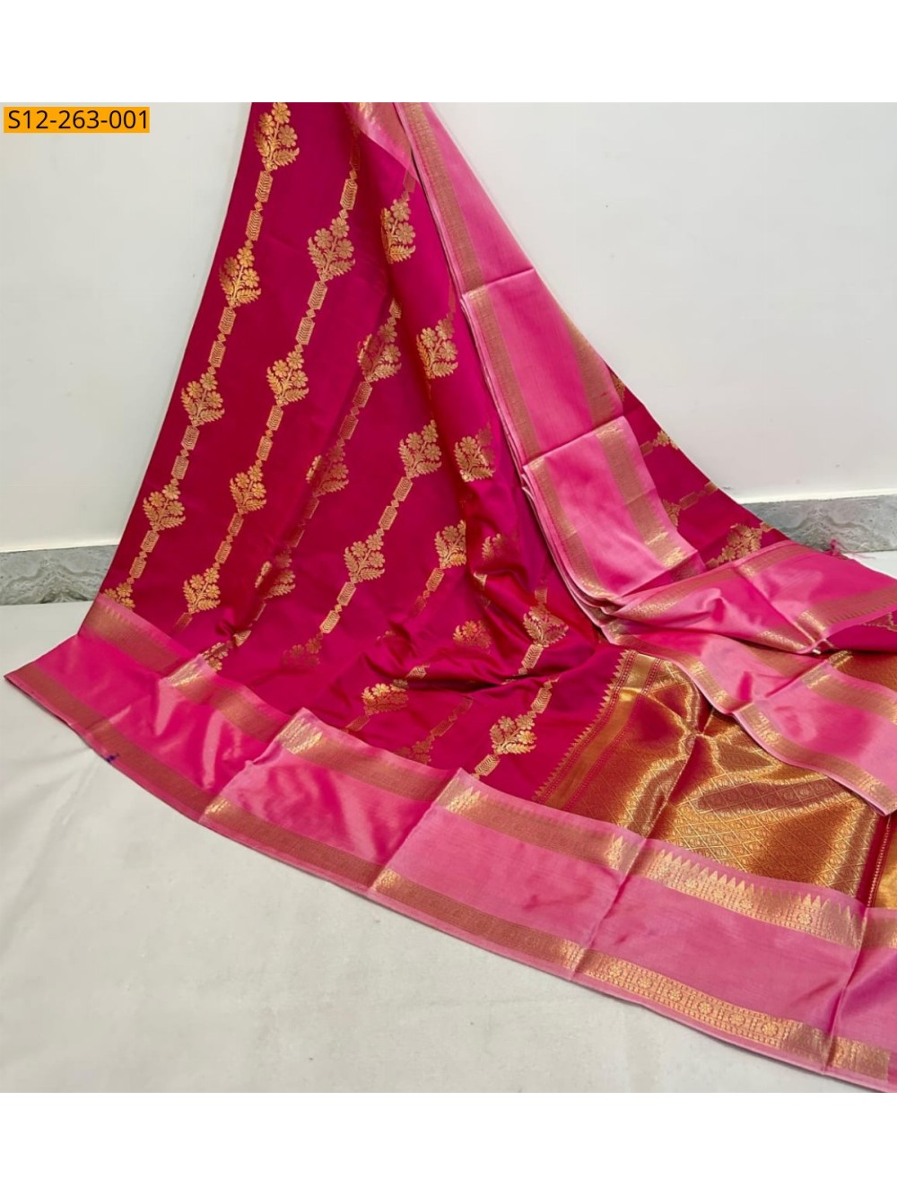 - Golden zari weaving both double side gap border