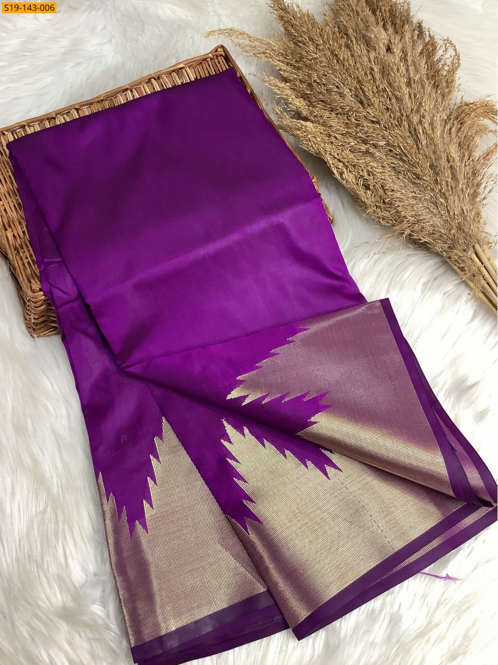 Dark Purple Temple Border Soft silk Saree