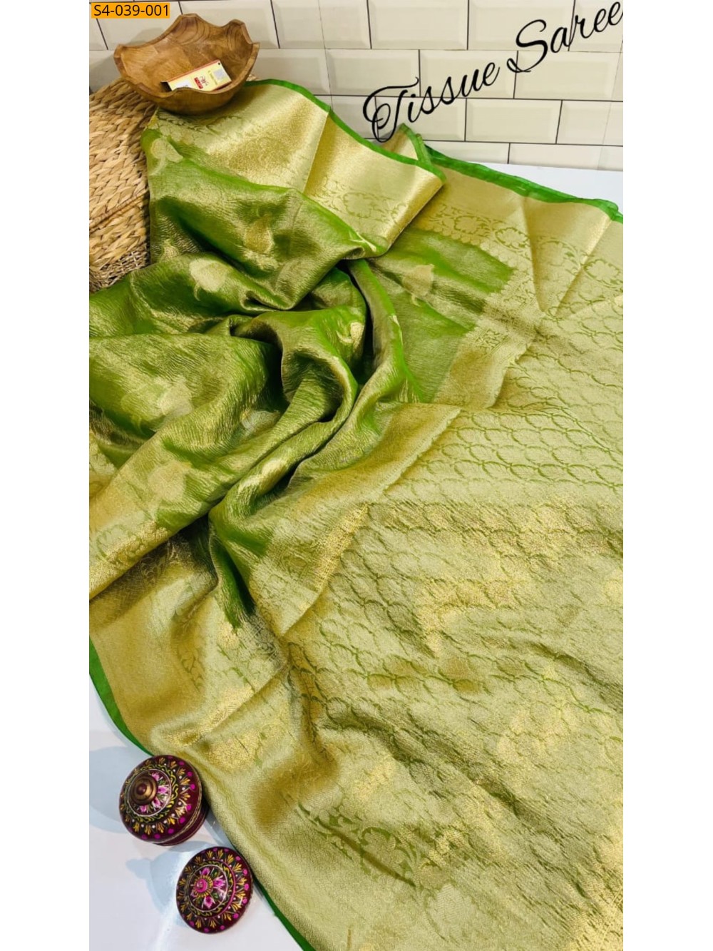 Green Banarasi Soft Tissue Crush Silk sarees