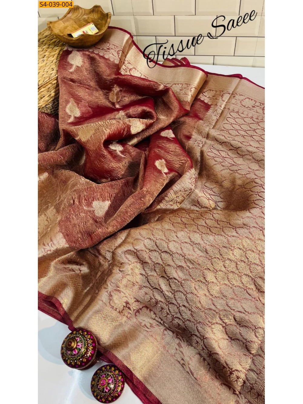 Maroon Banarasi Soft Tissue Crush Silk sarees