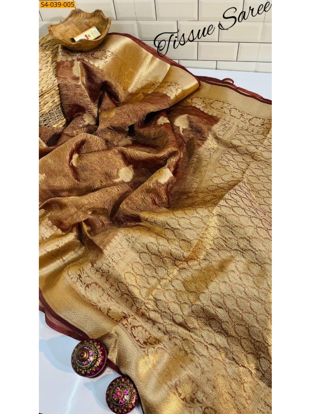 Brown Banarasi Soft Tissue Crush Silk sarees