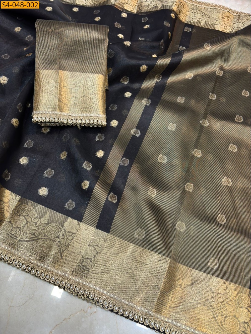 Black Soft banarasi tissue lace attached sarees
