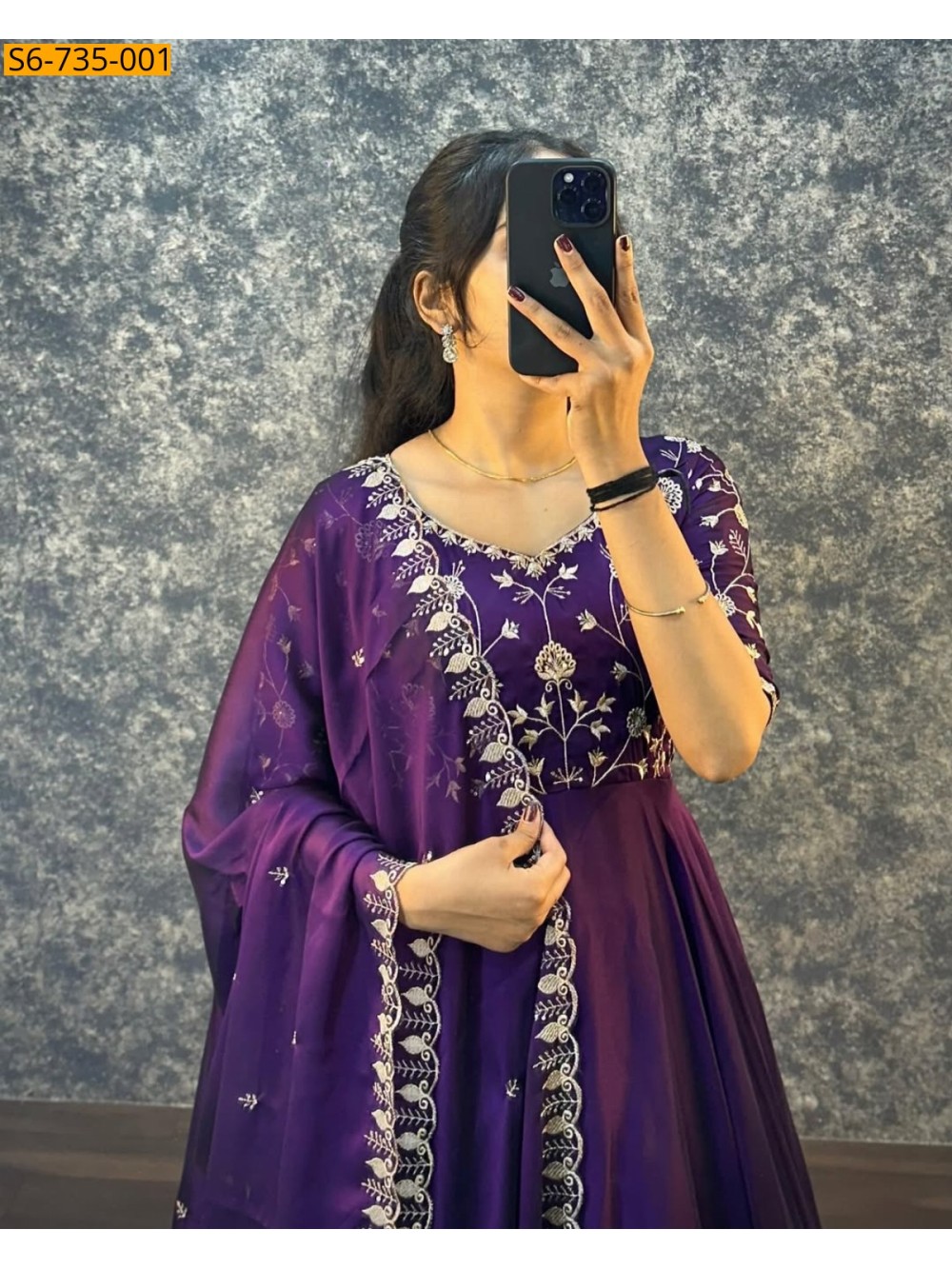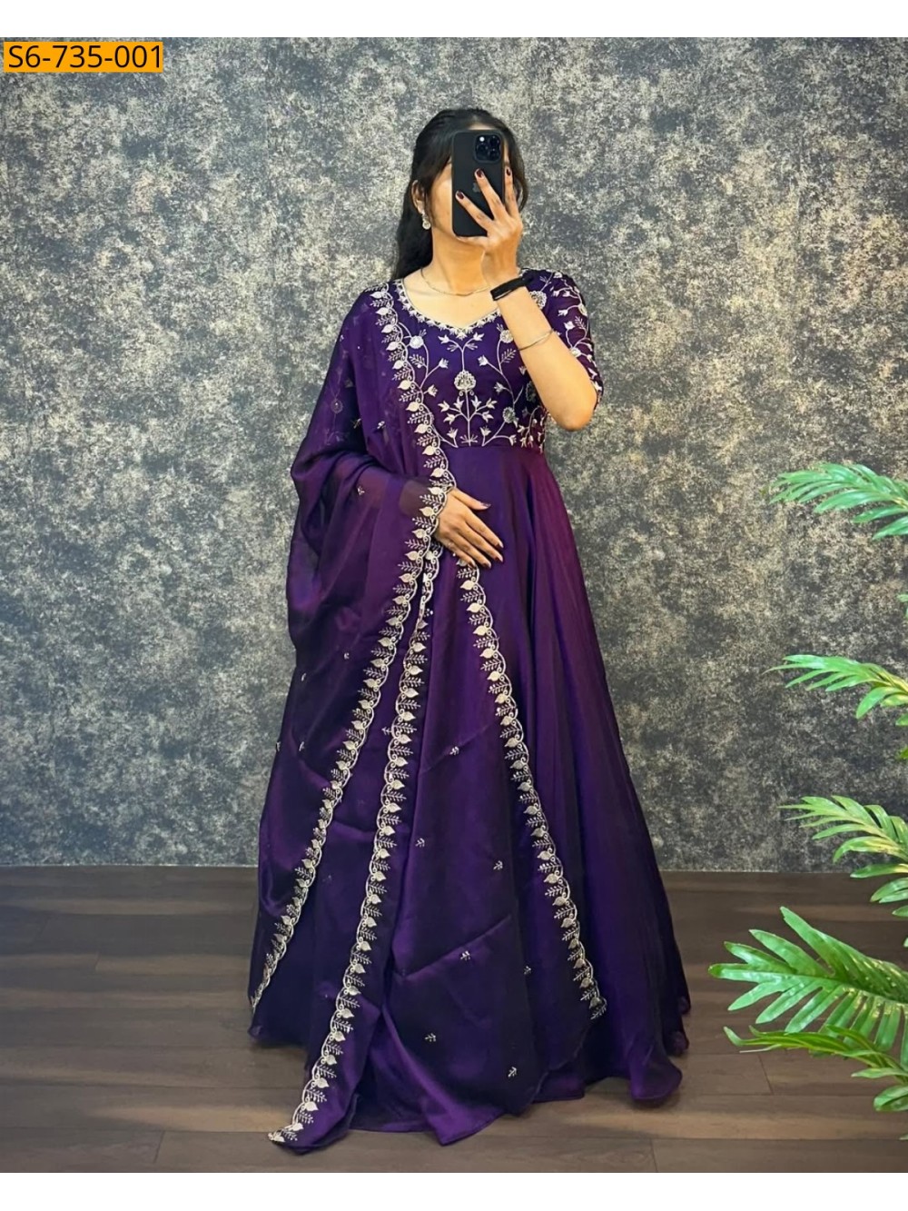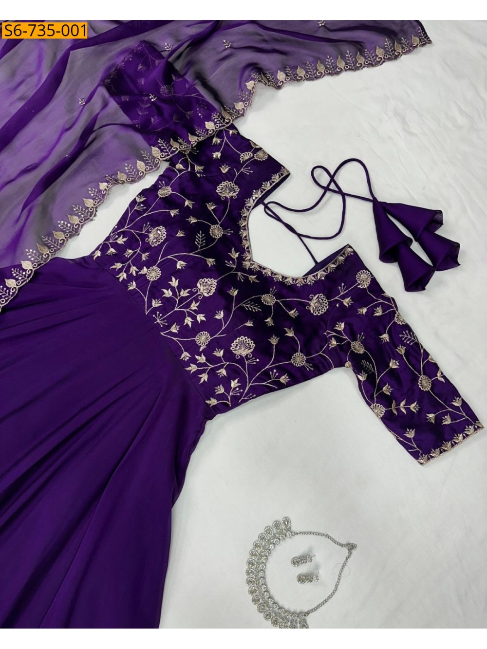 Violet Satin Chiffon Gown with Duppata Set